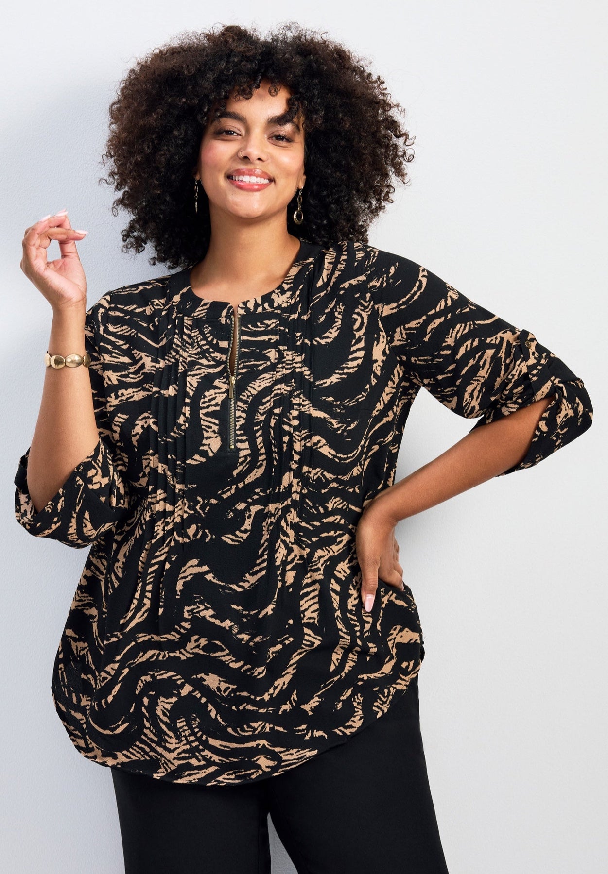 Smart & Chic Blouse you need in your wardrobe. Flattering pintucks at front and zip neck detailing.