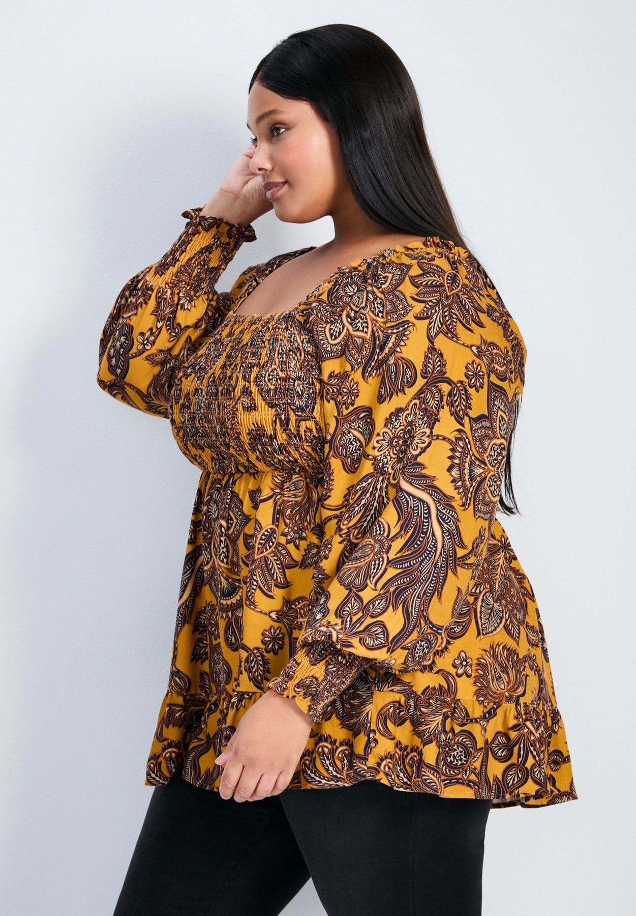 Introducing the Felicity Top—your go-to piece for effortless boho chic! This stunning shirred bodice top with a square neckline and long blouson sleeves is designed to make you feel both comfortable and fashion-forward. The intricate shirred cuff detail adds a touch of elegance that elevates any casual ensemble.