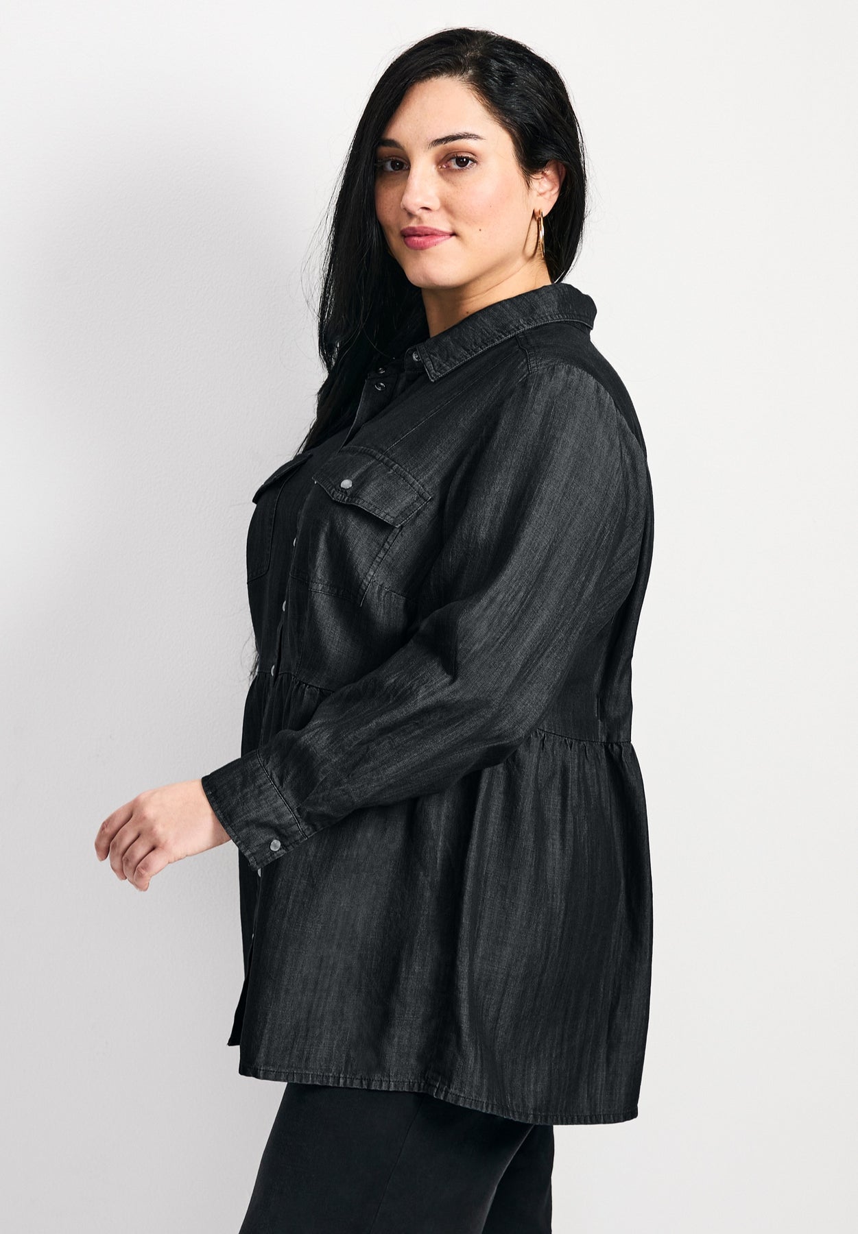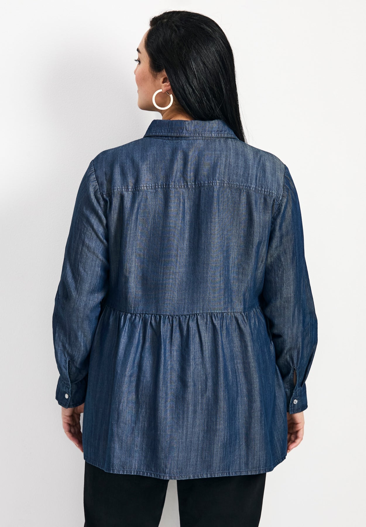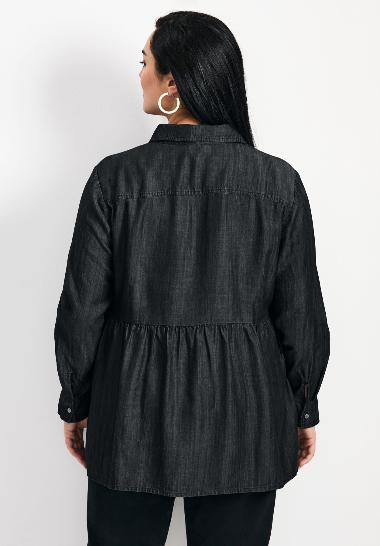 Step into style with our collared button-through super soft lyocell shirt, the ultimate blend of chic and comfort! The flattering tiers and long sleeves with self-fabric cuffs make this piece an everyday favorite! Whether you’re heading to the office or a weekend brunch, it’s perfect for any occasion. Feel the softness against your skin and experience the confidence boost that comes from wearing such a fabulous piece! Make it yours today and transform your wardrobe into a haven of trend-setting style.
