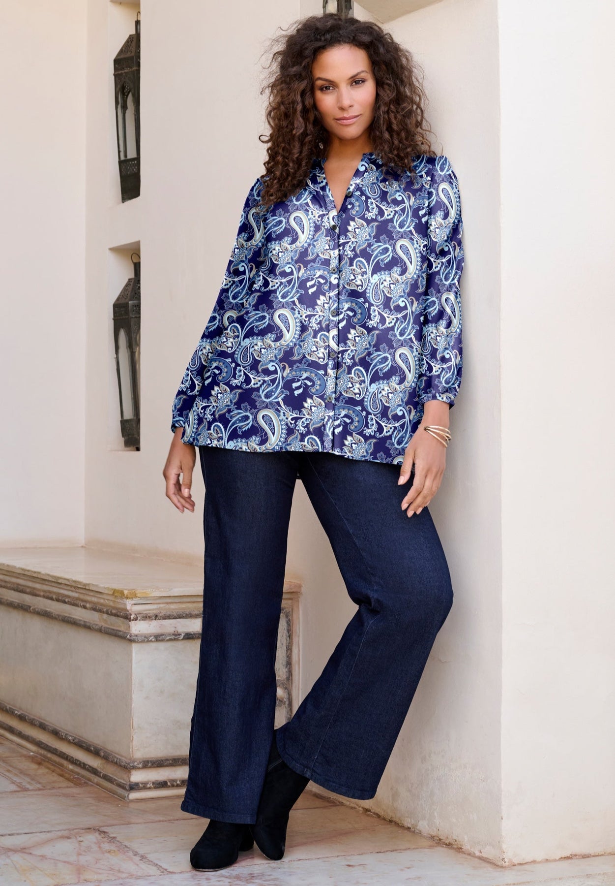 Buttoned V-Neck Blouse | Roaman&
