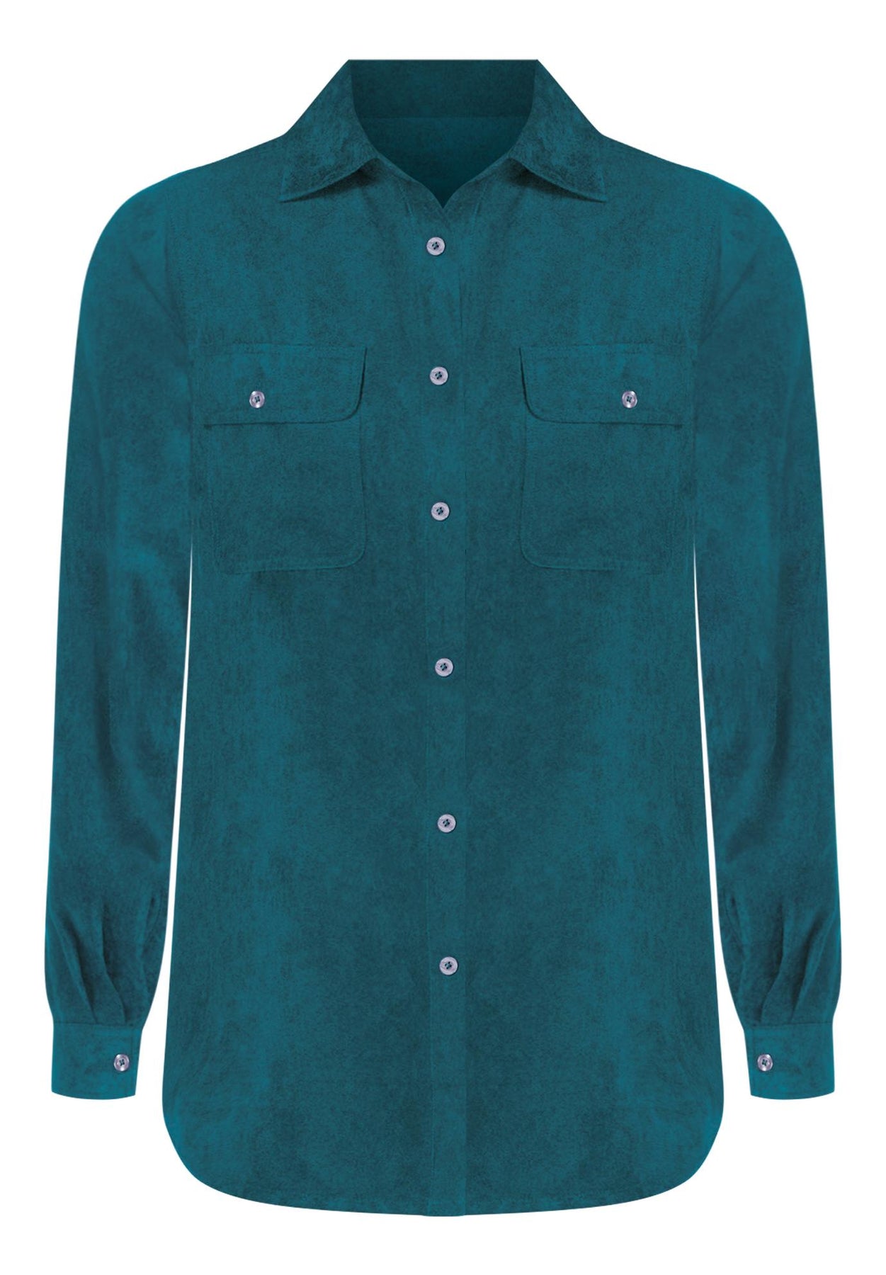 What makes this shirt great is how smooth and easy the faux suede fabric is. Perfect for layering over a tee or tank on chilly days. Button up in a classic shirt with the look and feel of suede. Long sleeves with adjustable button cuffs. A-line silhouette.