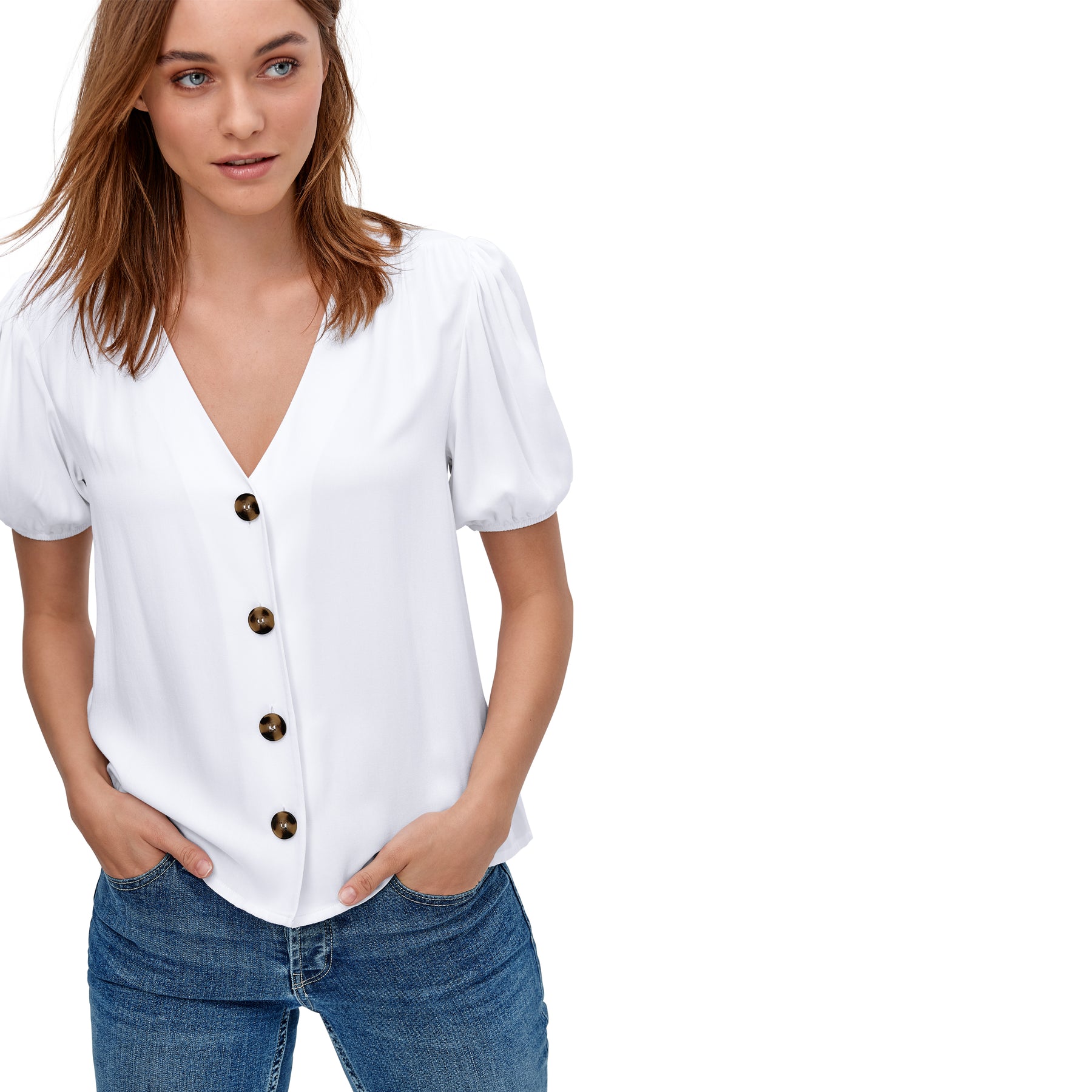 Modern minimalism at its best, this tortoise button blouse is the hottest trend this season.