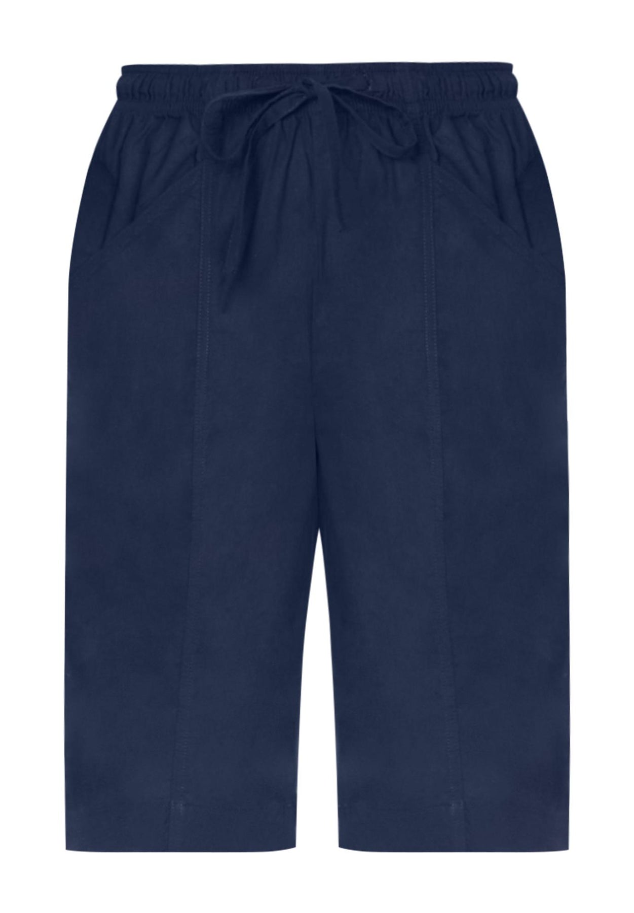 Get vacation ready with these easy pull-on shorts. Perfect for warm weather to keep you cool for all day comfort. Classic straight fit short that sits above the waist. Elastic waistband with drawstring. Front seam and two slash pockets.