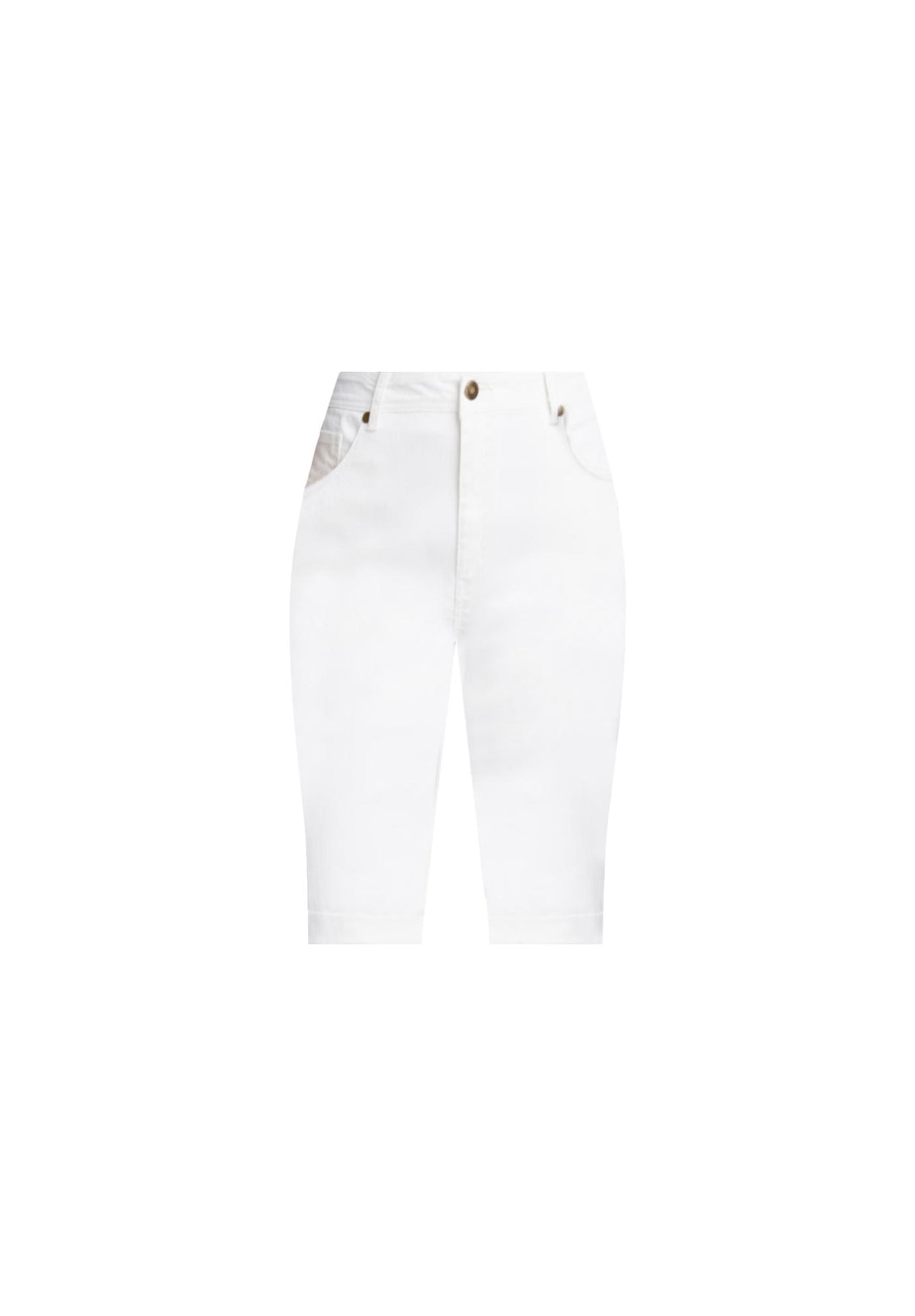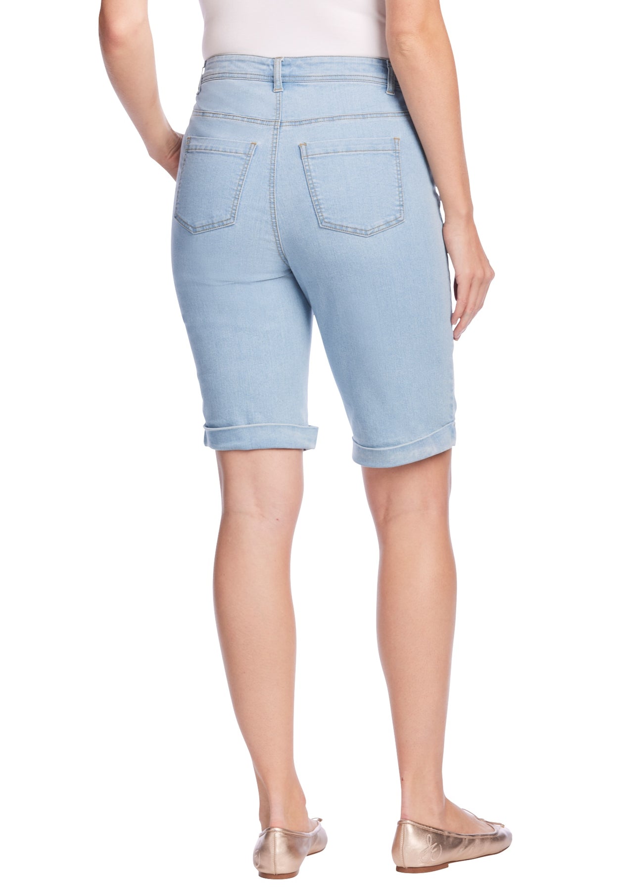 These classic five-pocket Bermuda-length jeans shorts are made from soft stretch cotton for a great fit that moves with your body. A straight, knee-length cut, achieves a fashionable, laid-back silhouette. Our special stretch blend hugs your curves comfortably, achieving a feminine shape. The zip fly front secures with a jean tack button.