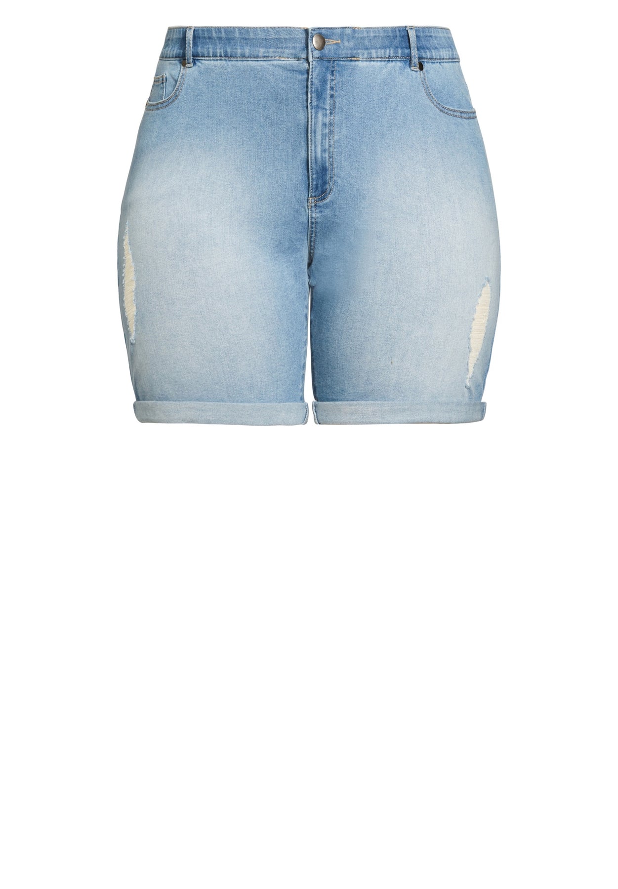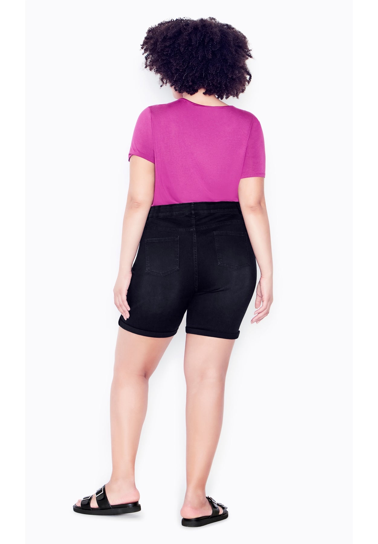Summertime style is easy with the Giana Ripped Short. These trendy denim shorts are tailored to flatter your curves, with a comfort elasticated waistband and stretch denim fabrication. The distressed detailing and rolled cuffs add a fashionable touch, while the above-the-knee length keeps you cool and comfortable in the heat.