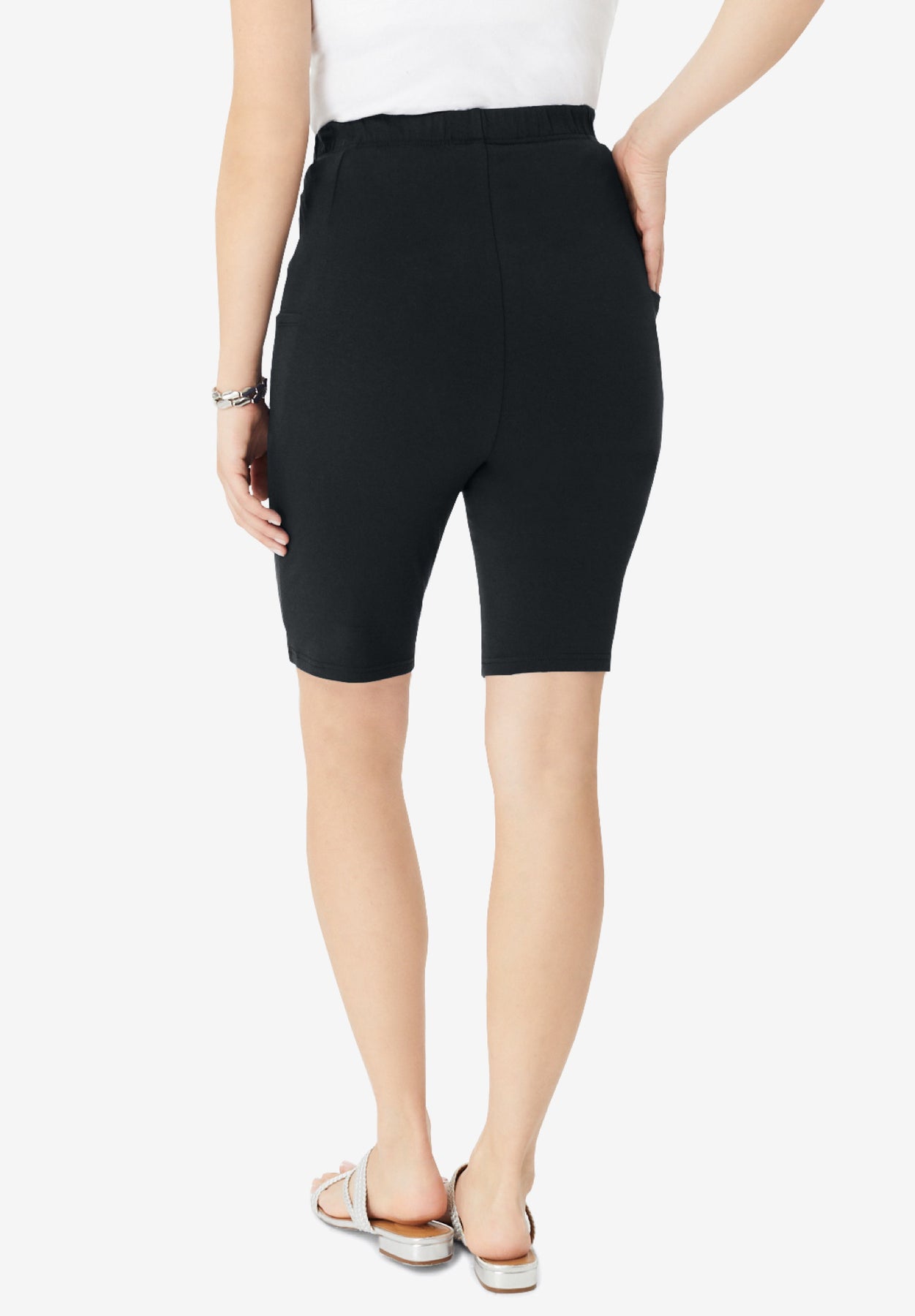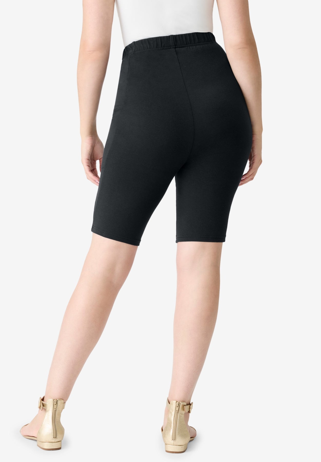 Ride, exercise, or go for coffee comfortably with these bike shorts. The two functional side patch pockets let you feel secure that your phone and wallet are safely by your side. They also look great worn with a sports bra or under an oversized sweatshirt. Pull-on, elasticized waistband.
