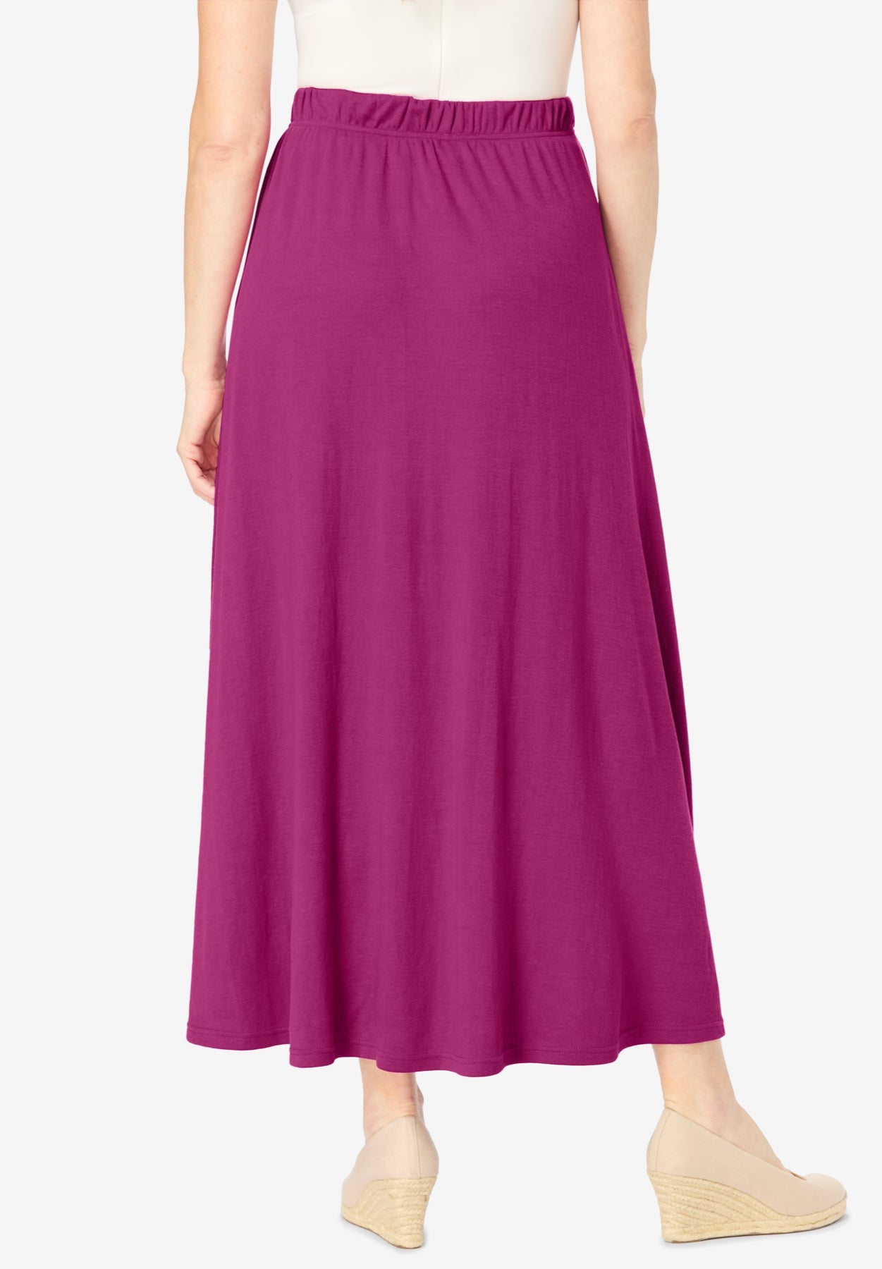 Rated number one for all-day comfort and fantastic versatility, the 7-Day Knit maxi skirt should be an important part of your wardrobe in every color! This soft, breathable fabric blend always looks smooth. The full covered elastic waistband offers pull-on convenience and a made-for-you fit. The easy sweep cut is perfect for running errands, casual days, dressed-up casual—even lounging at home! The essential side-seam pockets add practicality without compromising style.