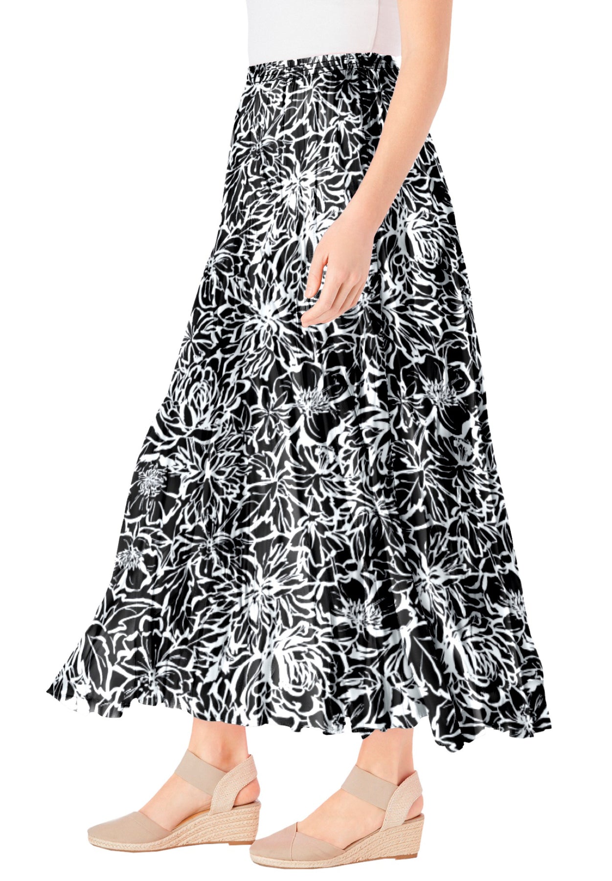 Color meets comfort when you're wearing our Pull-On Elastic Waist Printed Skirt. It's soft, flowing and the full elastic waistband is the easiest way to look dressed up.