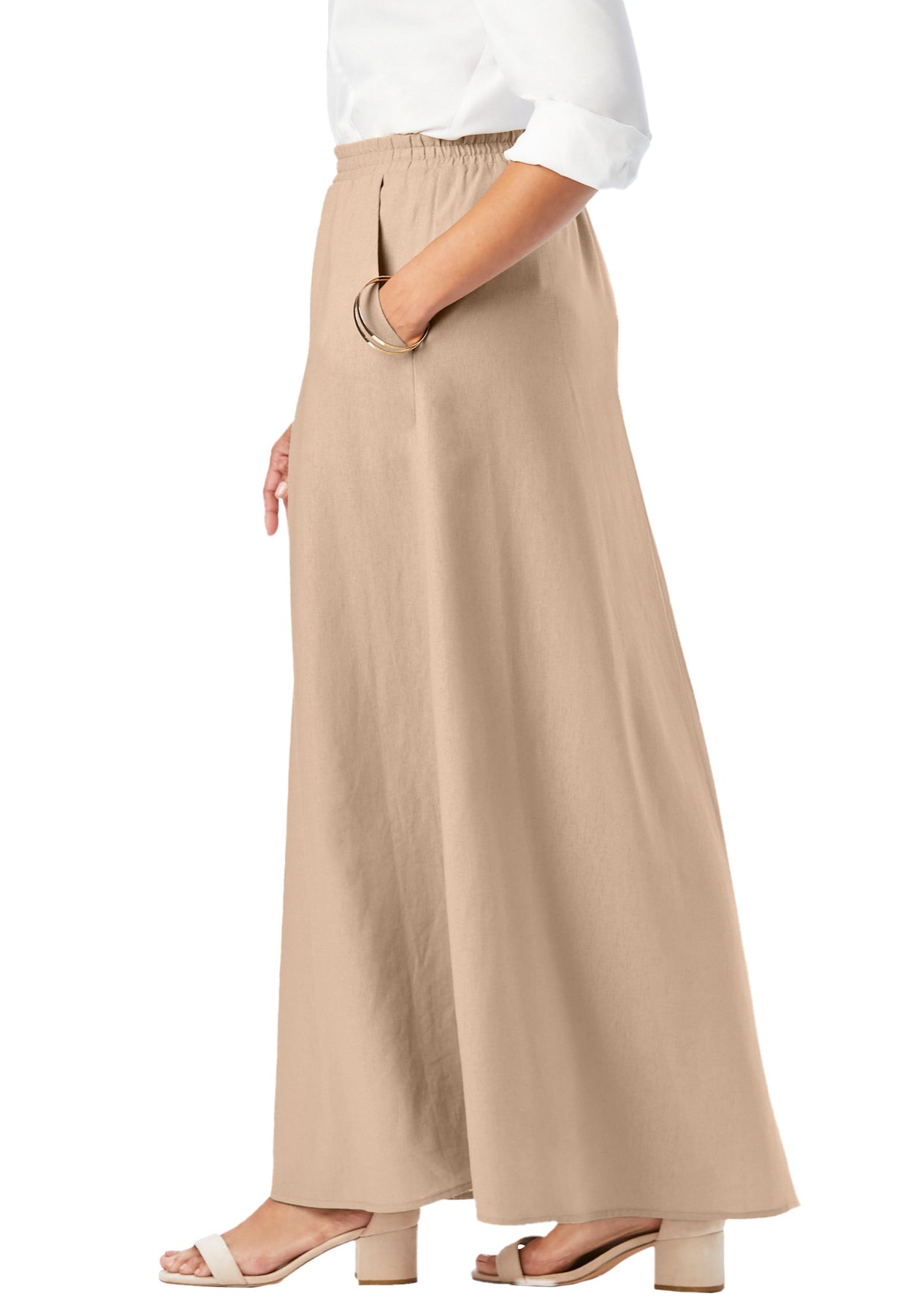 A must-have addition to your spring-into-summer wardrobe, this lightweight linen maxi skirt is endlessly versatile and perfect for every occasion. Full elastic waistband for comfort and ease. Side slash pockets.