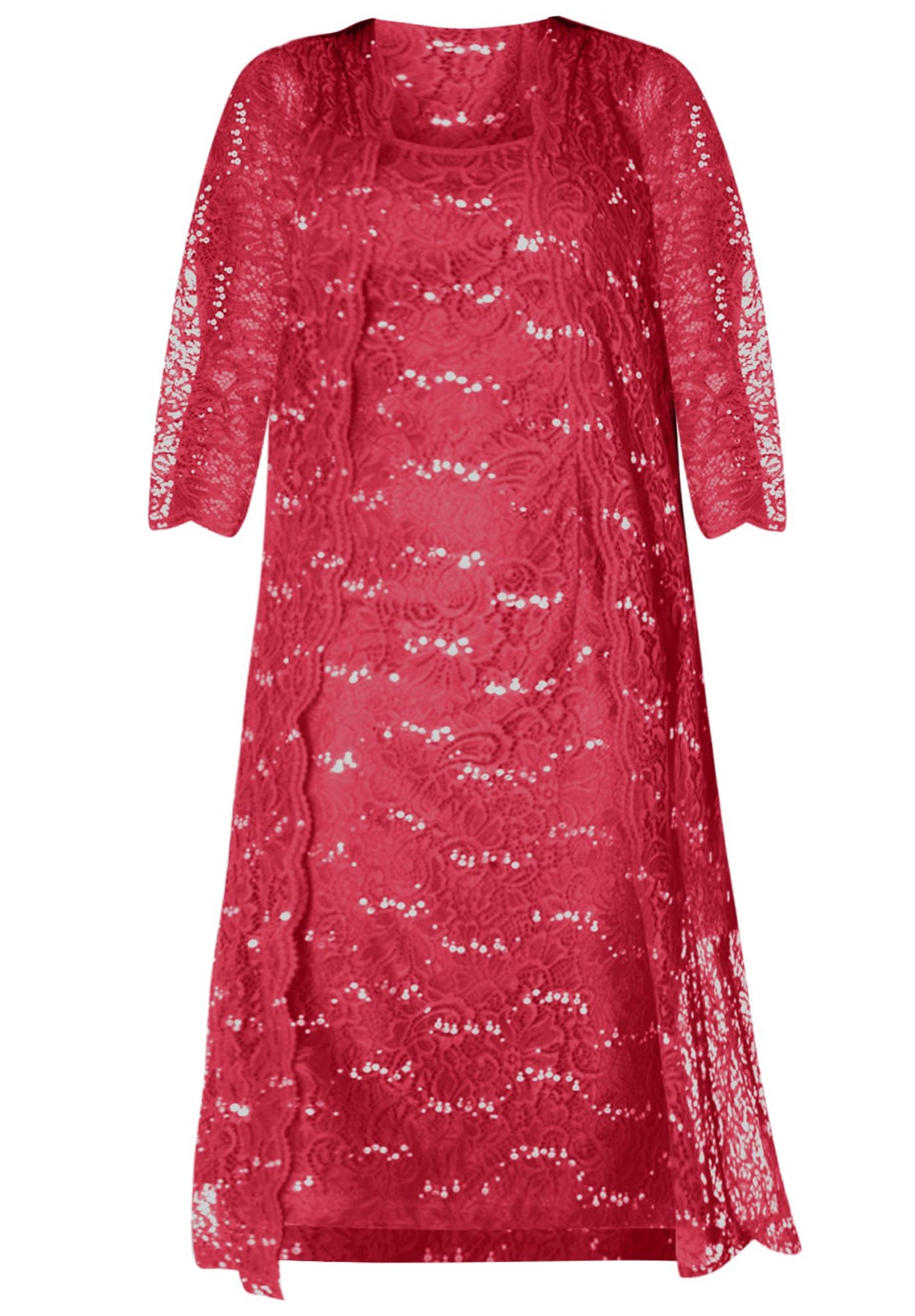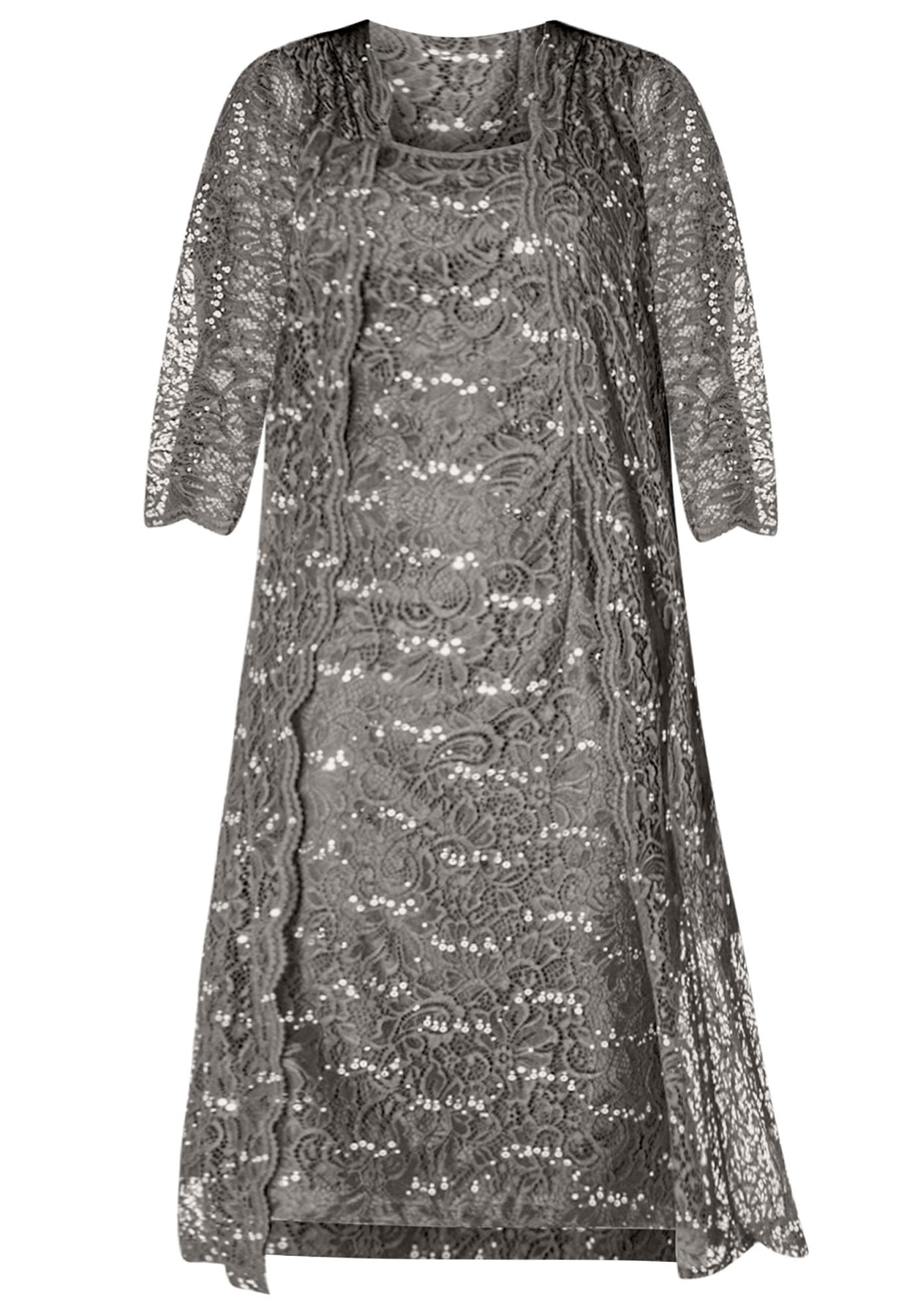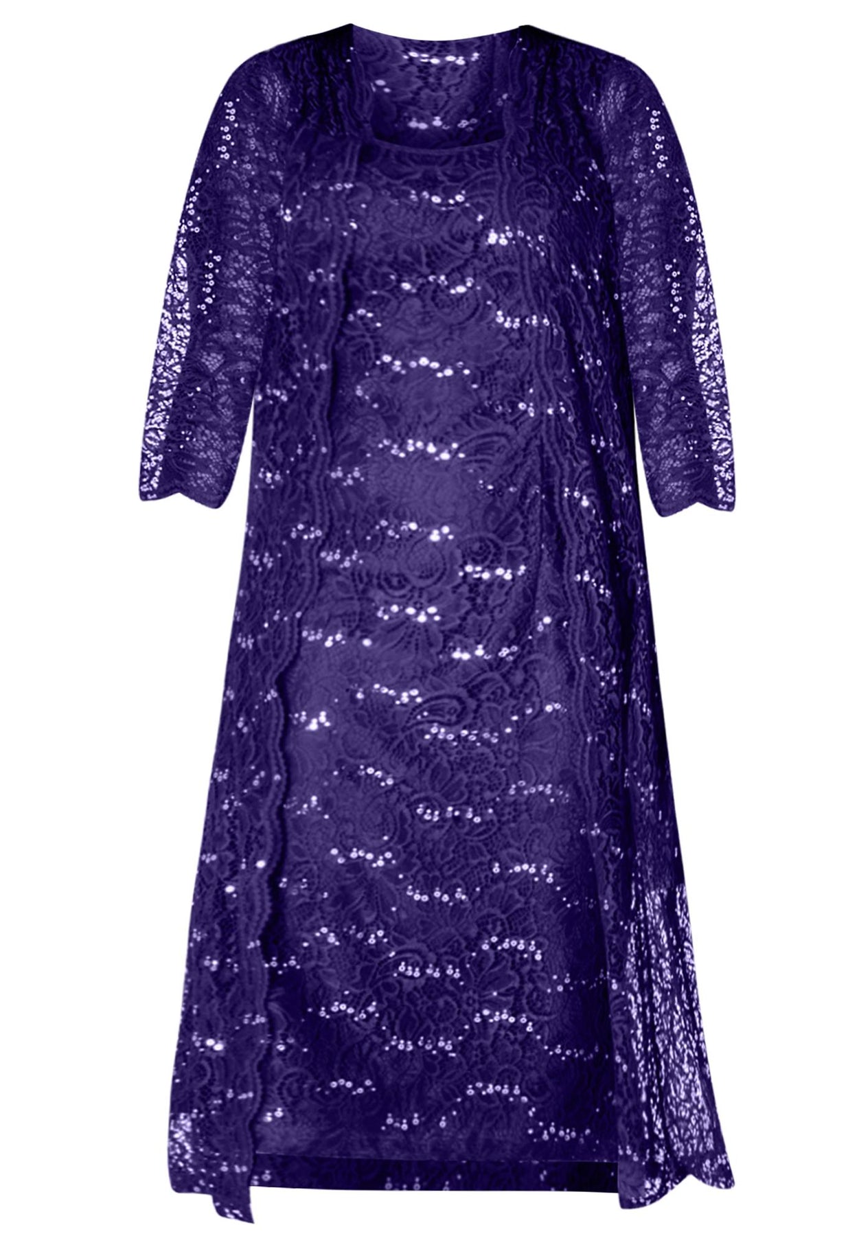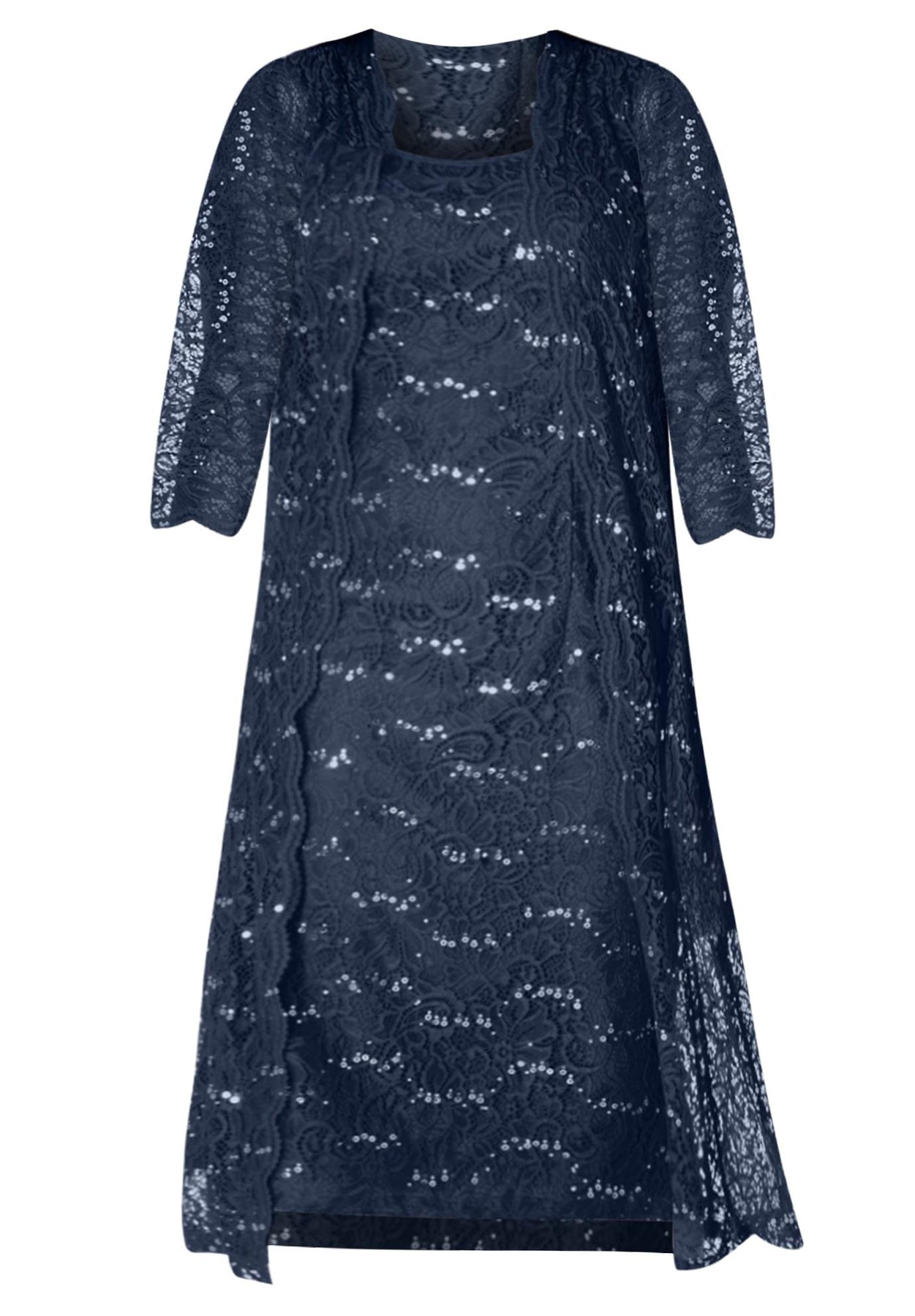 Plus Size 3/4 Sleeve Formal Duster Sequin – Embellished Lace Dress Set