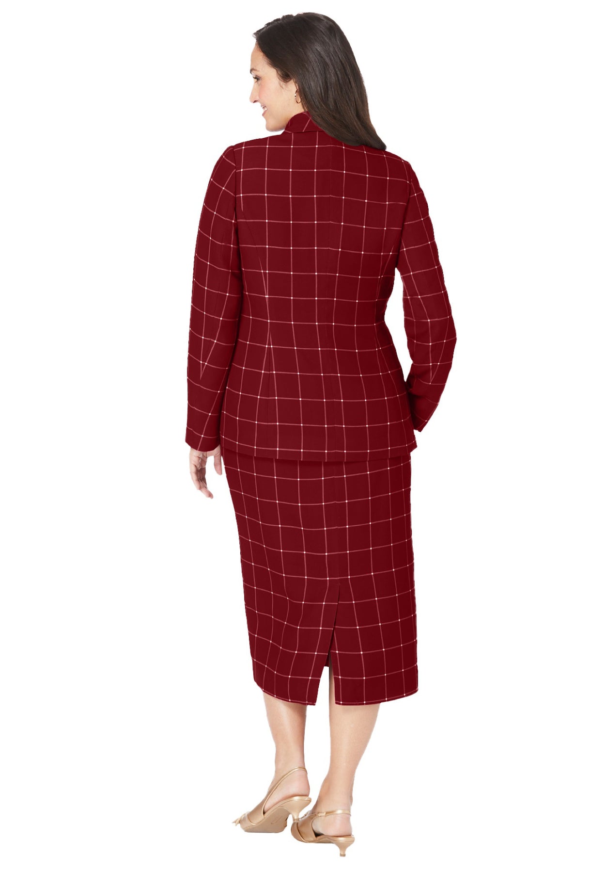 The Jessica London women's plus size 2-Piece Stretch Crepe Single-Breasted Skirt Suit has a classic silhouette and an impeccable fit that gives you a sophisticated look any time of the year. Single-breasted jacket and flat-front skirt are crafted in textured crepe and fully lined.