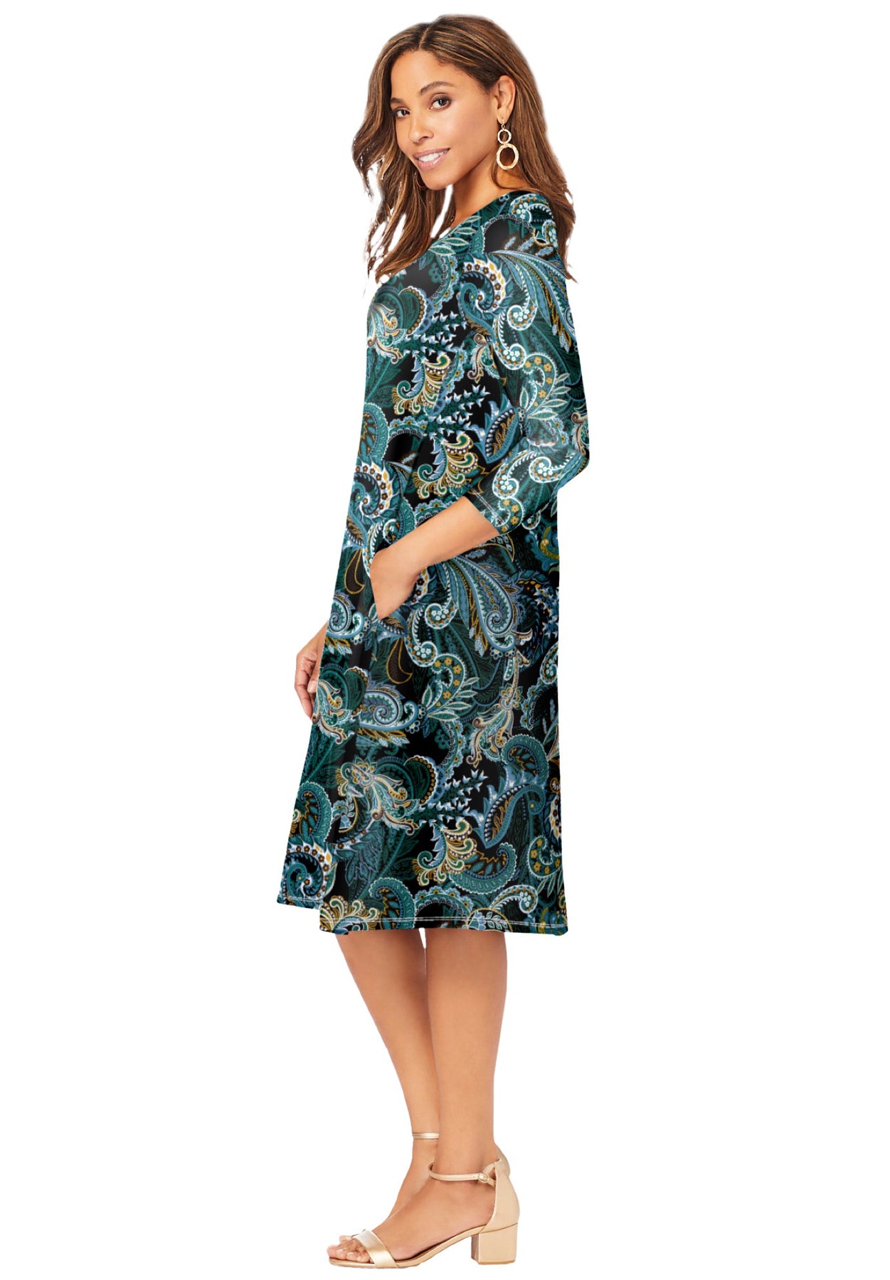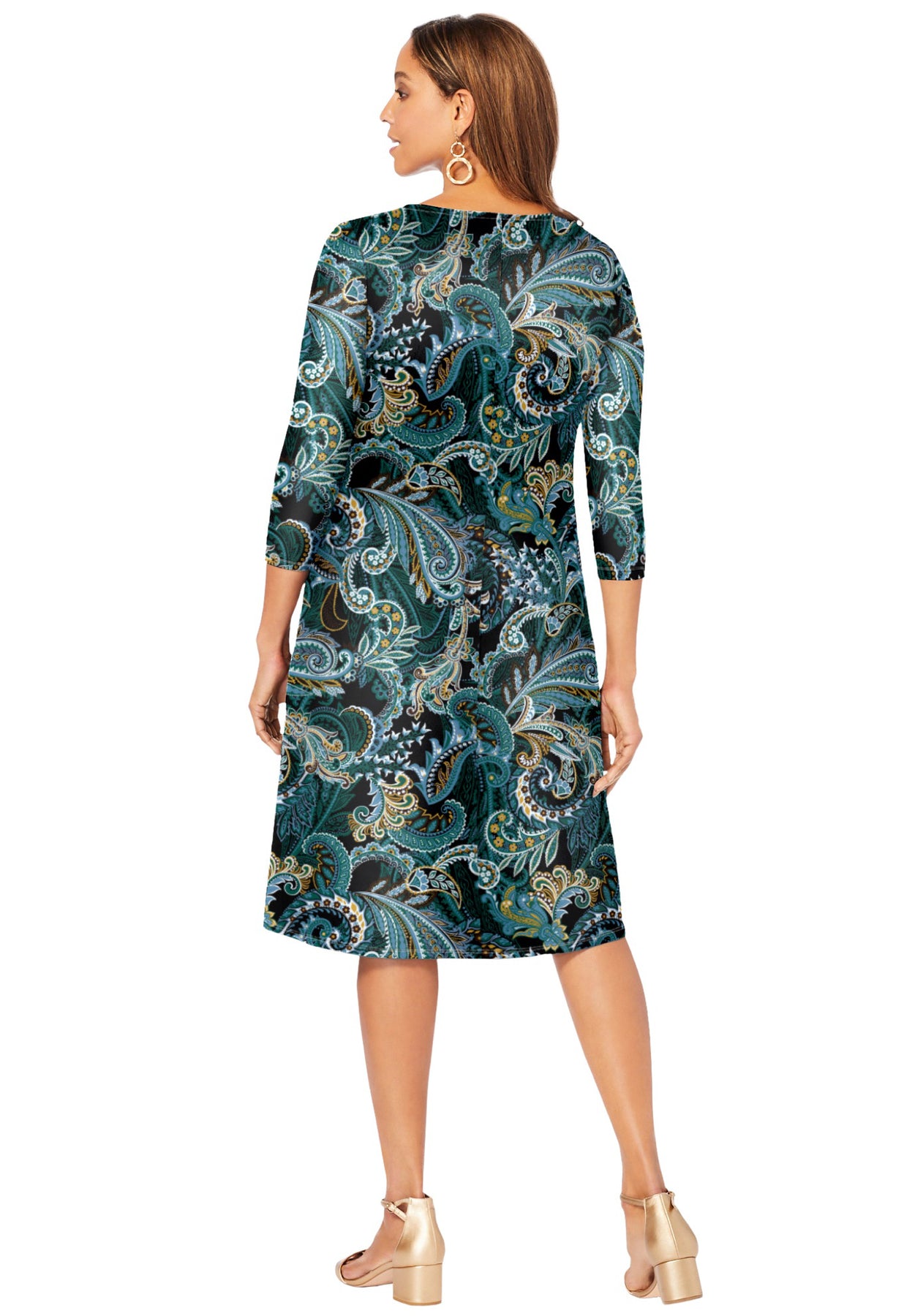 The Jessica London women's plus size Stretch Knit Three-Quarter Sleeve T-shirt Dress is an effortlessly casual one-and-done outfit that's perfect for wherever your day takes you.
