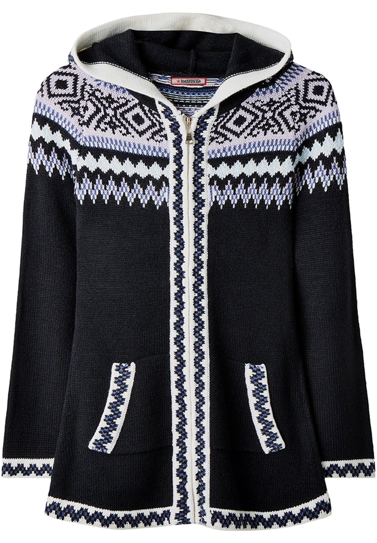 Fair Isle Drawstring V-Neck Zip Hoodie