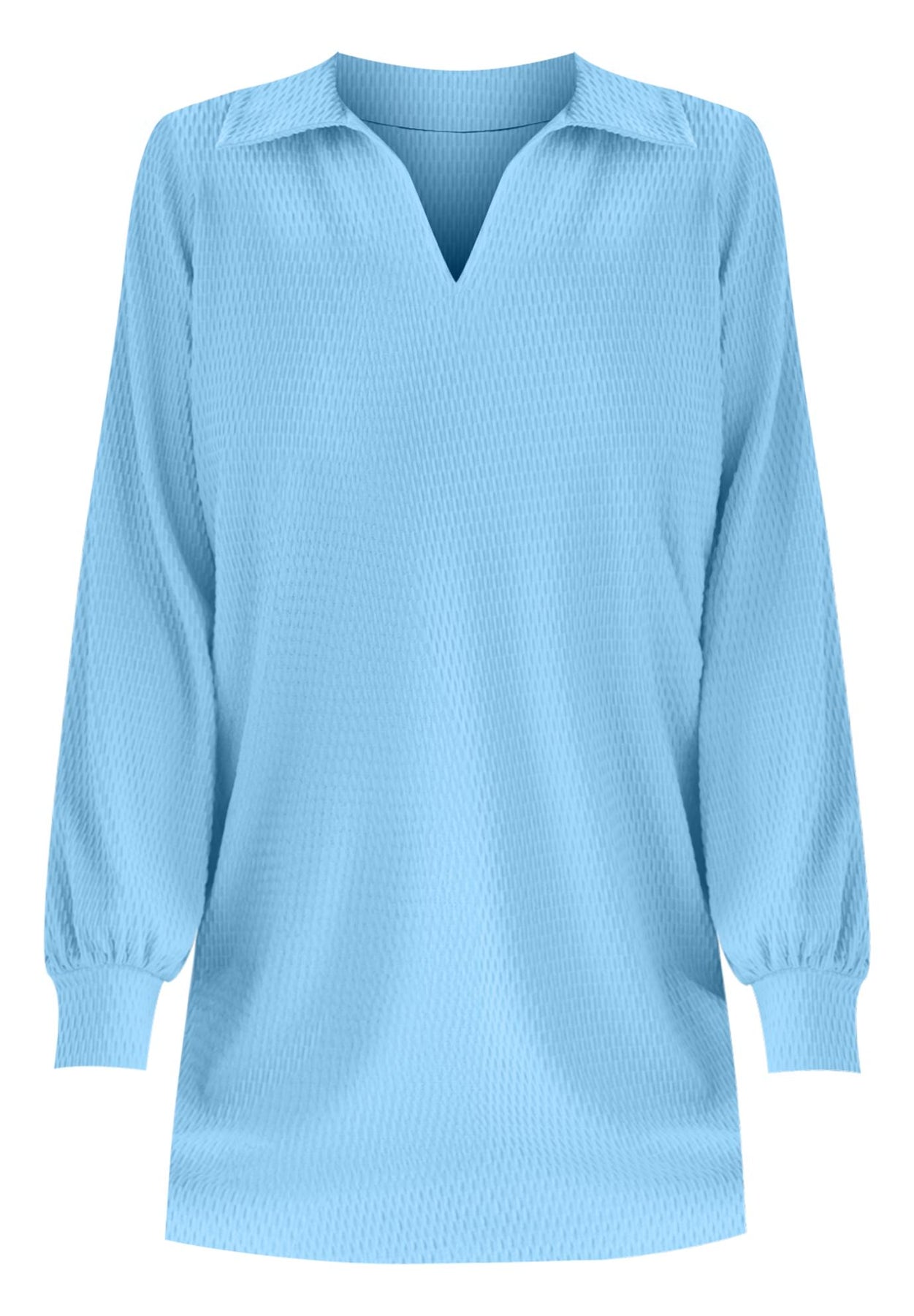 A texture delight! This Blouson Sleeve Texture Tunic is embossed for extra softness and features flattering blouson cut sleeves and relaxed body.