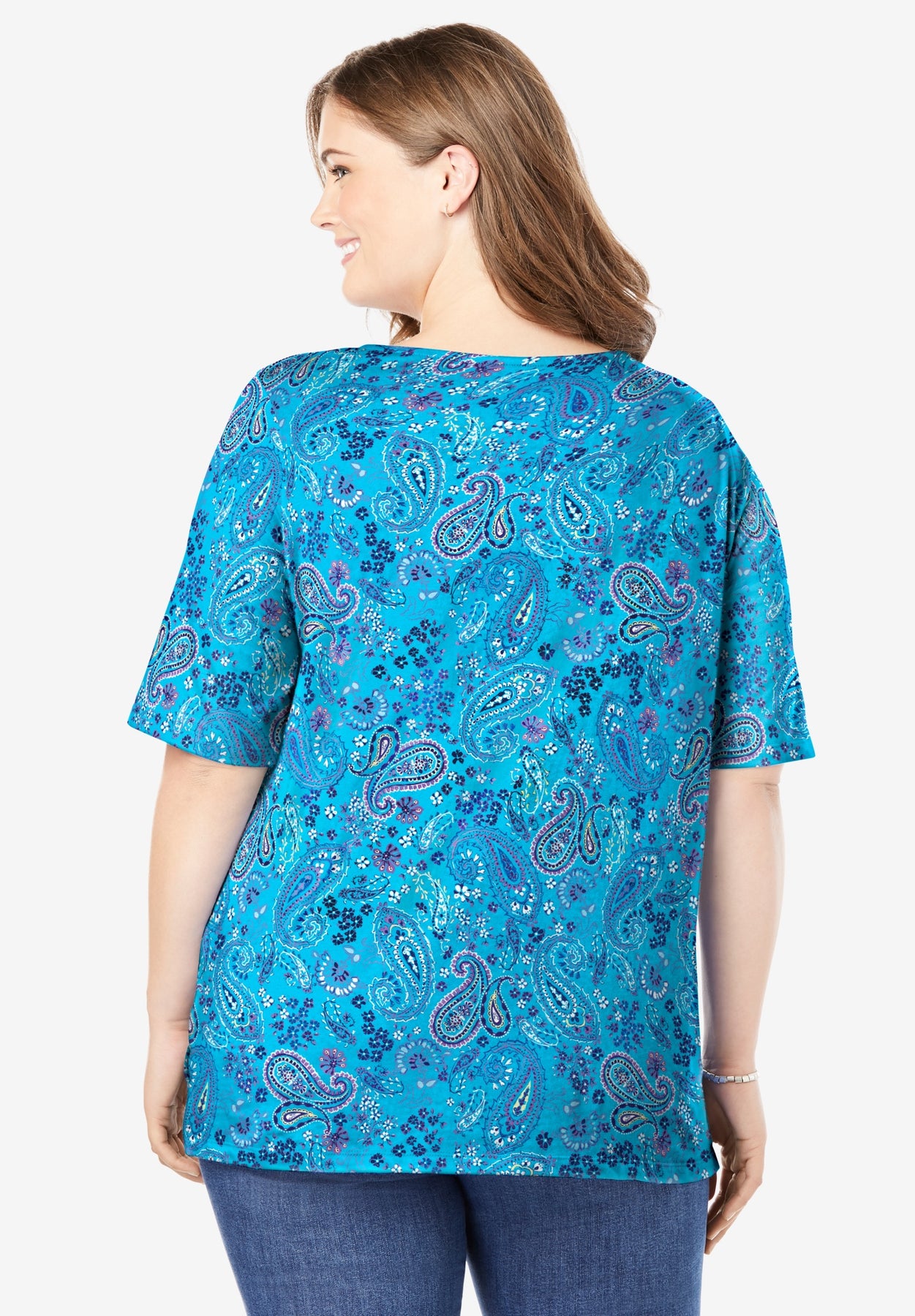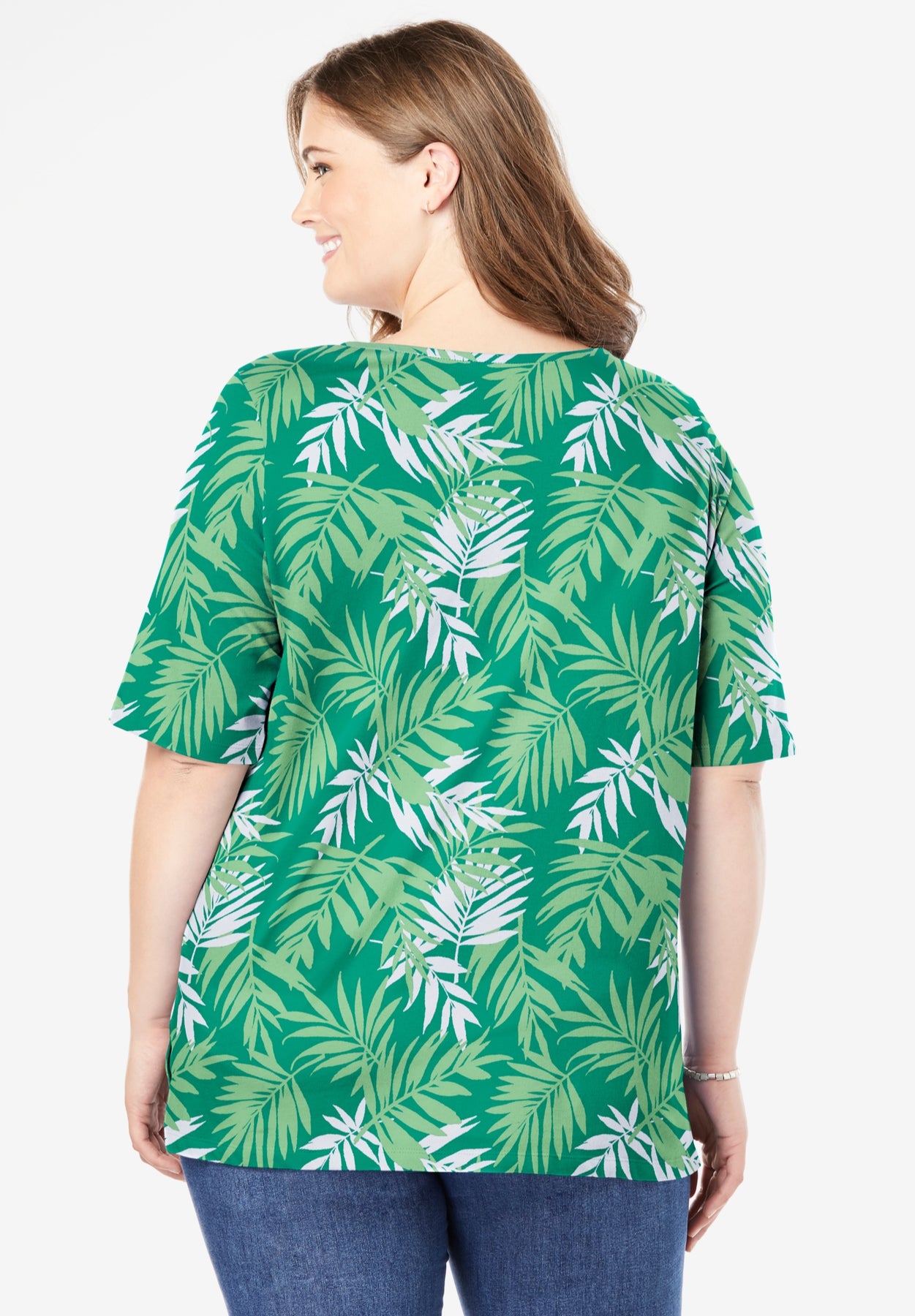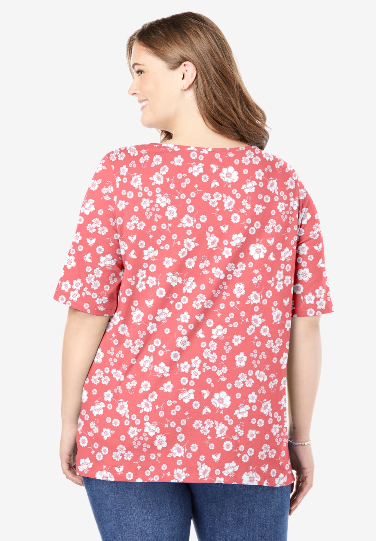 Enjoy a relaxed fit that makes this tee your comfiest yet, perfect for everyday wear. Square neckline with elbow-length sleeves and now in vibrant prints!