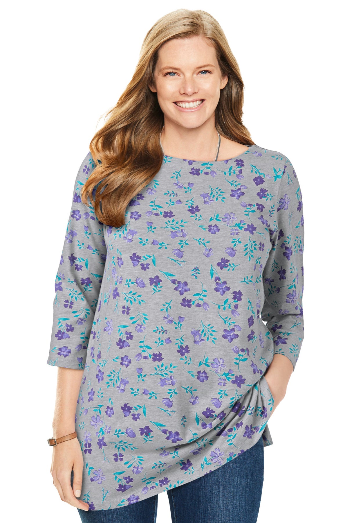 Perfect Printed Elbow-Sleeve Boatneck Tee | Woman Within