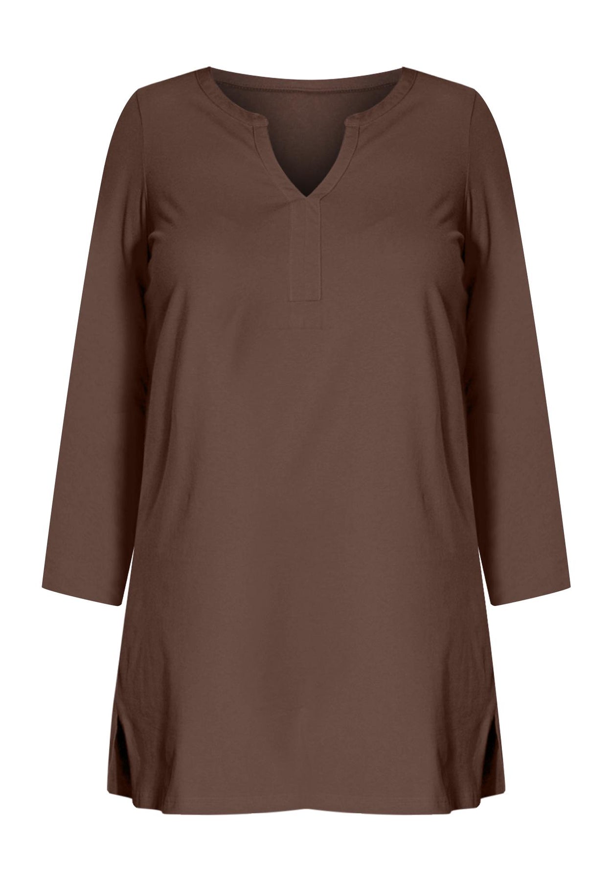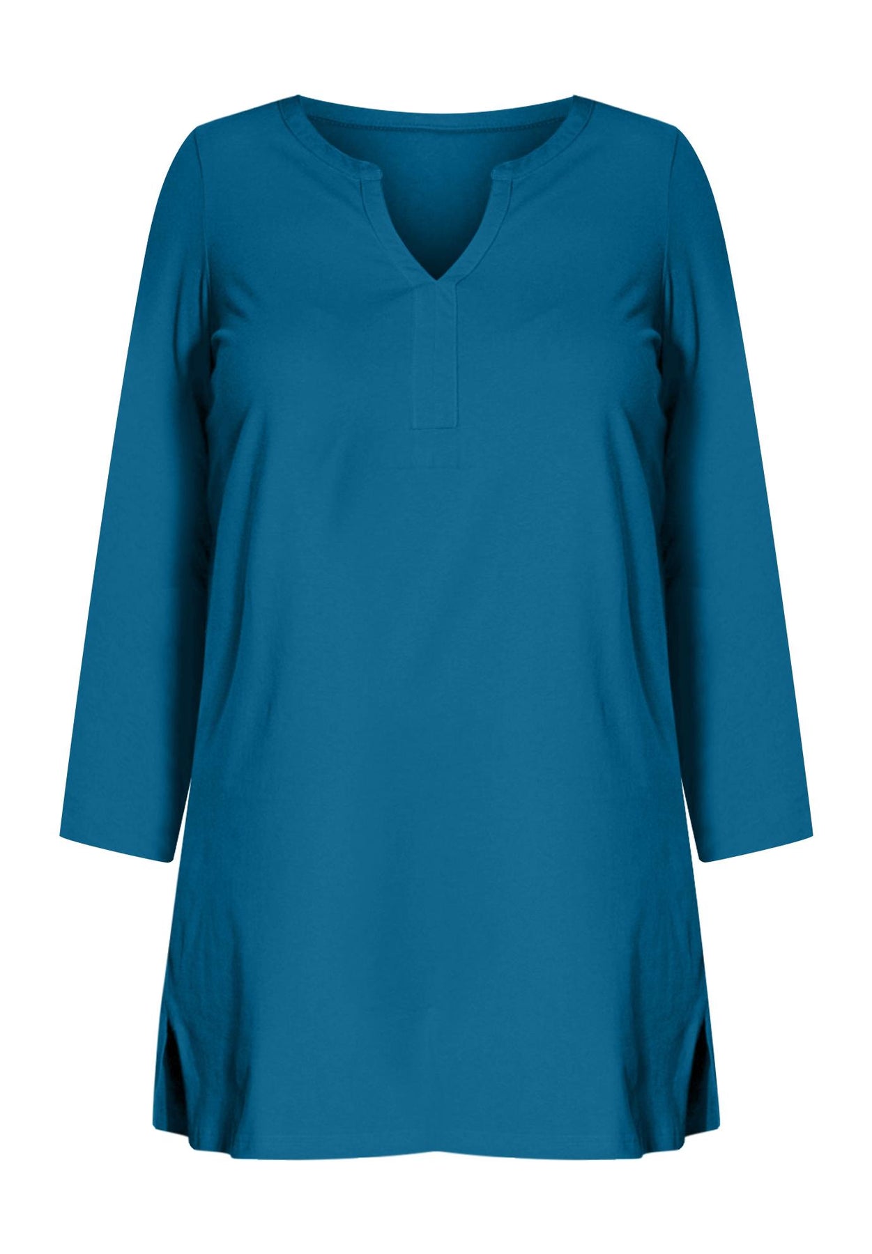 Relaxed yet refined, this oversized, easy-to-wear tunic features a banded collar with Y-neckline and side slits. It's the better-than-basic piece you need for stepping up everyday outfits.