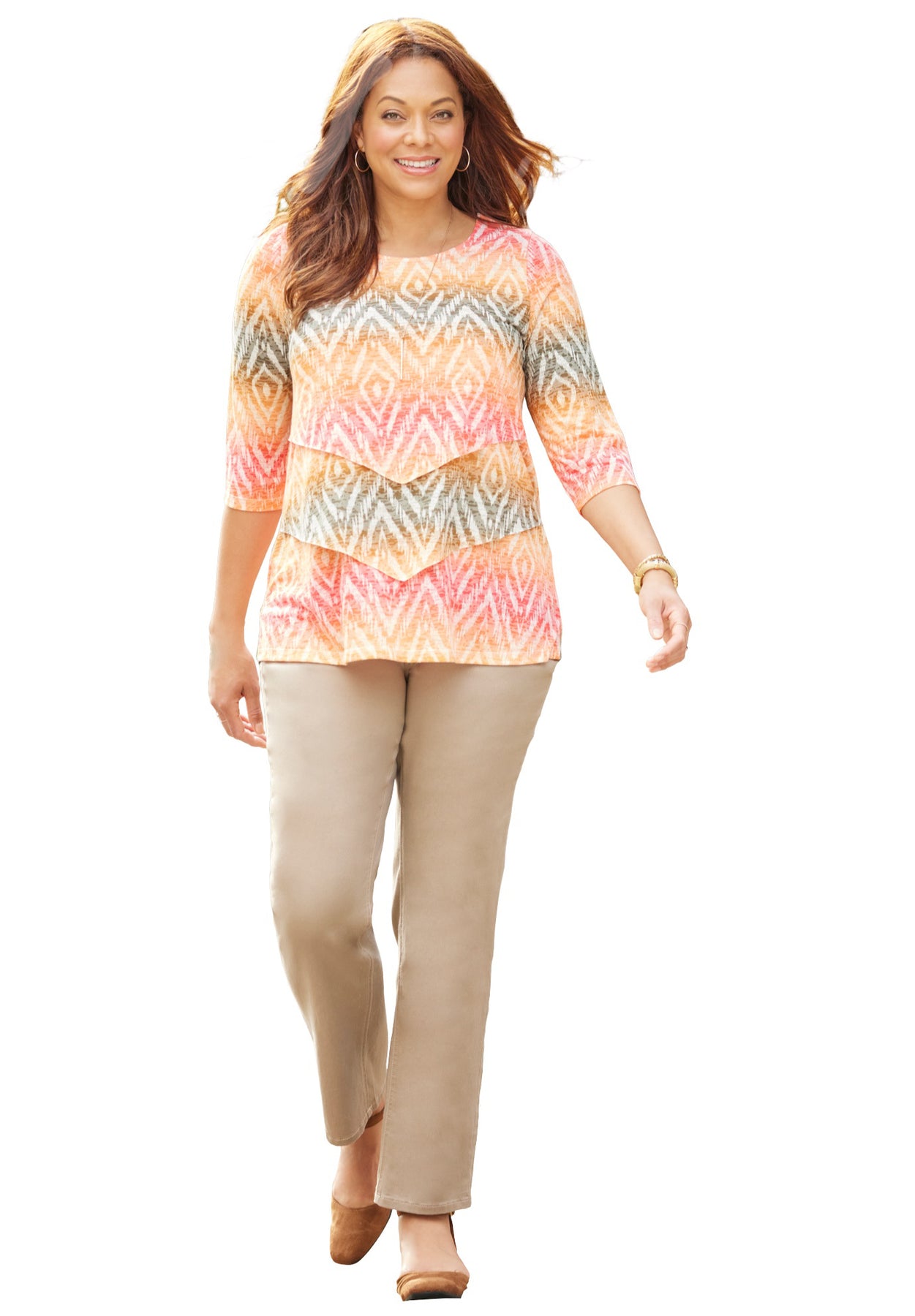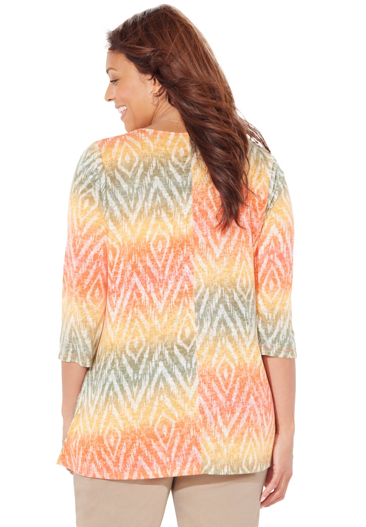 FIT: Relaxed, easy silhouette. Scoop neckline. 3/4 sleeves.