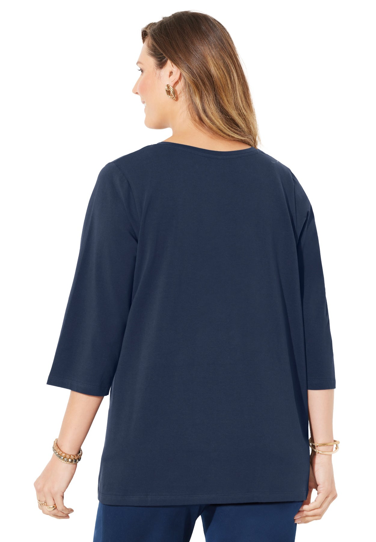FIT: Relaxed and easy with V-neckline and 3/4 sleeves.