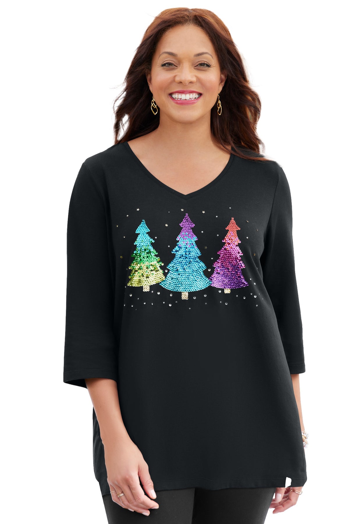 Get ready to celebrate! These are the Catherines classics that never fail to bring joy to your wardrobe. Soft and comfortable, with whimsical prints to brighten your outlook and outift. Wear them solo or under a jacket or vest, and pair with soft knit pants or jeans.