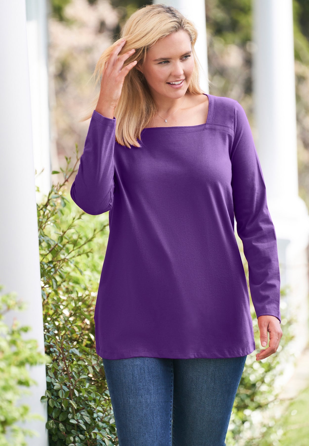 Part of our much-loved Perfect Tee collection, this long sleeve style has a unique square neck that frames the face and is a fun twist on an everyday tee. Grab it and go – it goes with everything in your closet!
