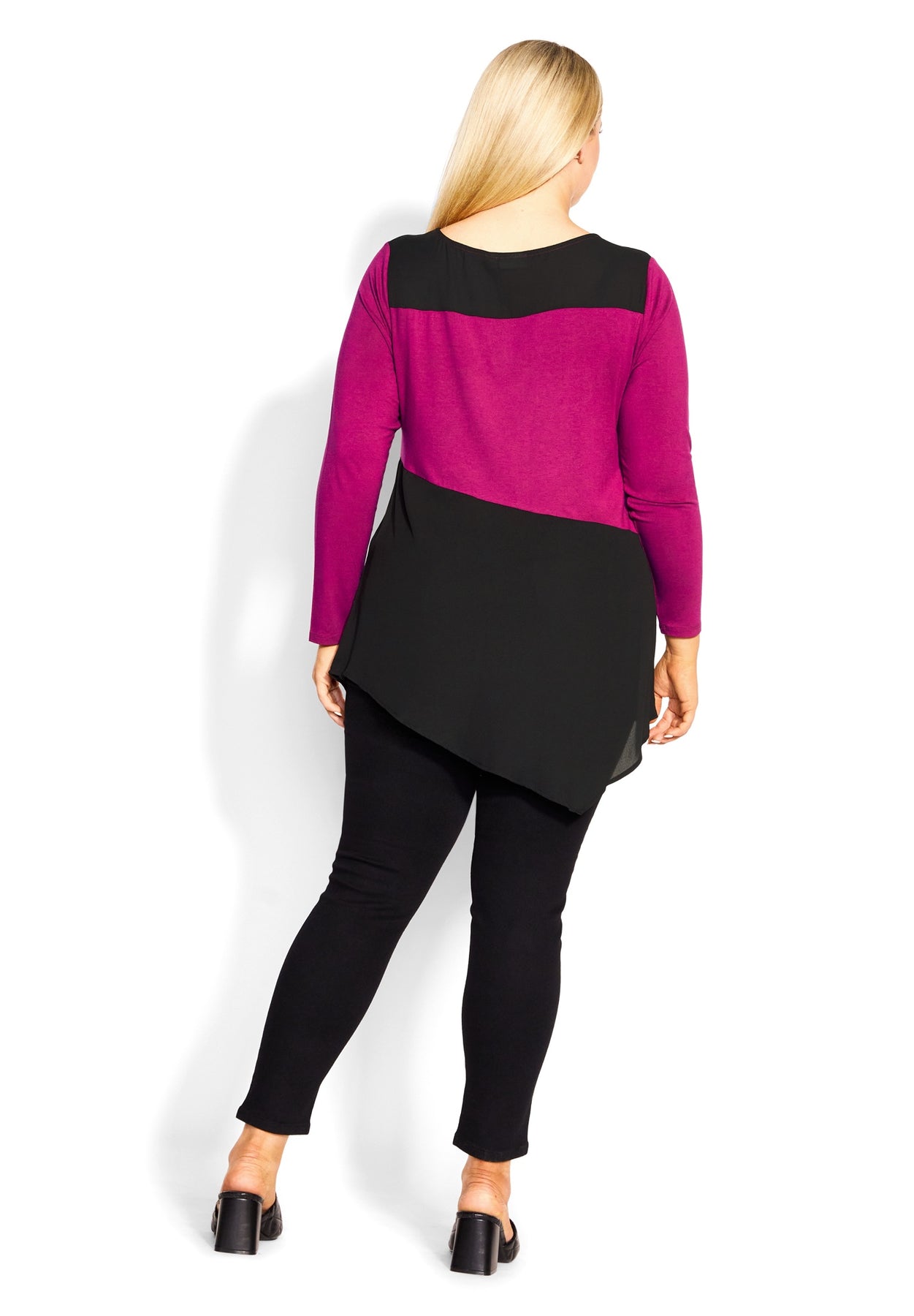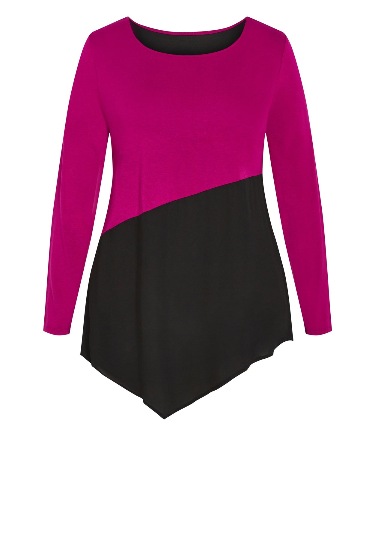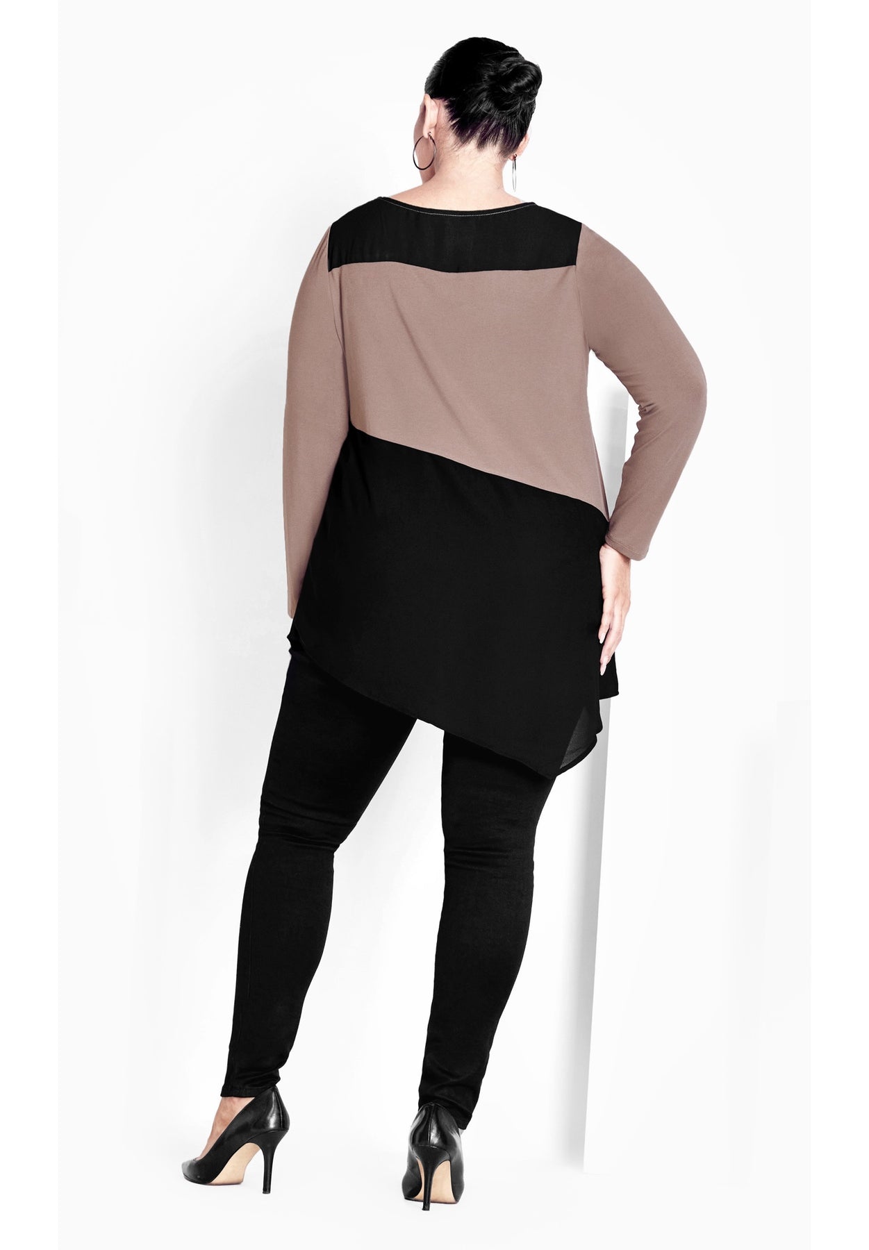 - Hip length curved hemline