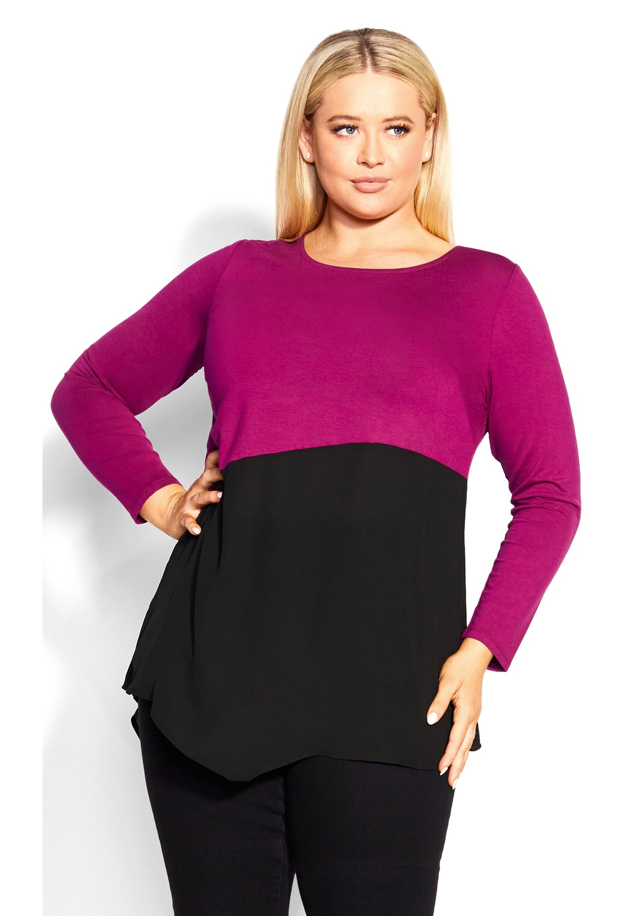 The Carla Top adds an effortlessly chic touch to your casual collection, featuring a striking color block design that is sure to have you standing out from the rest. With long sleeves for trans-seasonal wear, you'll be reaching for this casual top on repeat!