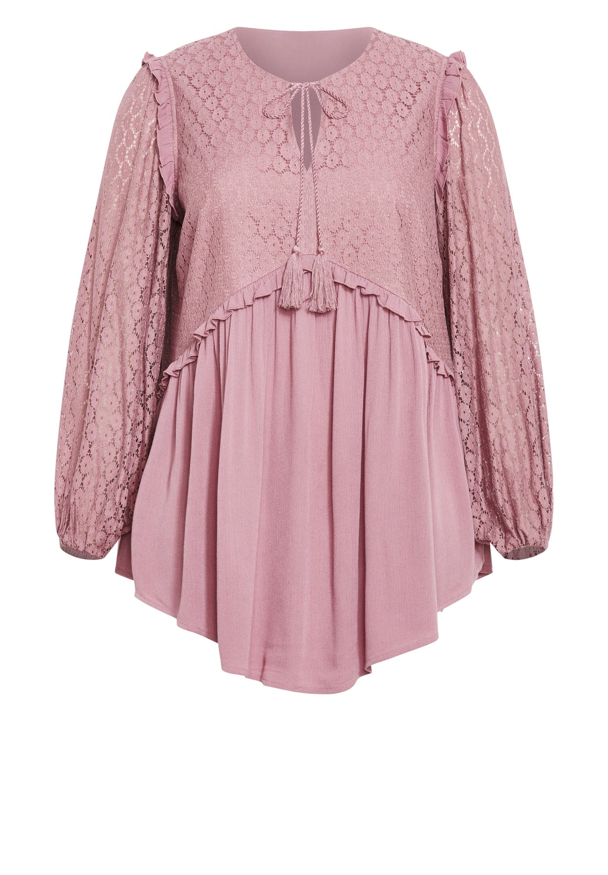 Balance feminine details and functional style with the Hazel Lace Tunic in a dreamy dusty lilac shade. Full length lace sleeves with elastic cuffs and a tassel tie bust detail give this tunic an extra wow factor.