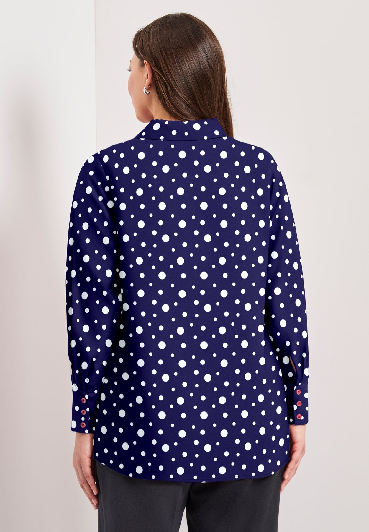 This long-sleeve button-up top offers a relaxed fit for comfortable wear. Featuring a classic collar and a versatile design, it pairs effortlessly with both casual and dressy outfits.