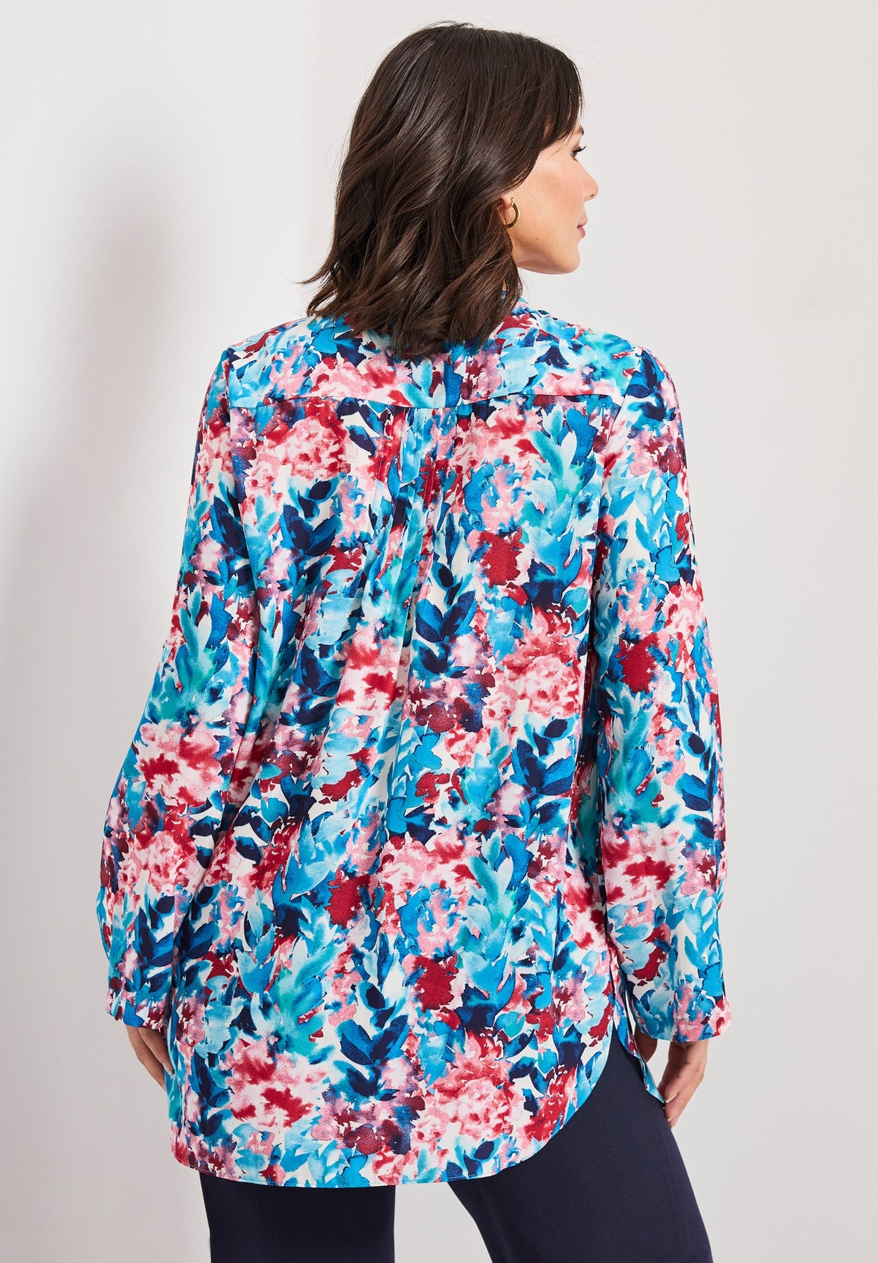 This top will be a favorite in your wardrobe! This tunic top features delicate pintuck detailing along the bodice, adding a touch of elegance to its flowy silhouette. Designed with a zip neckline and roll-tab sleeves, it offers both style and versatility for effortless wear.