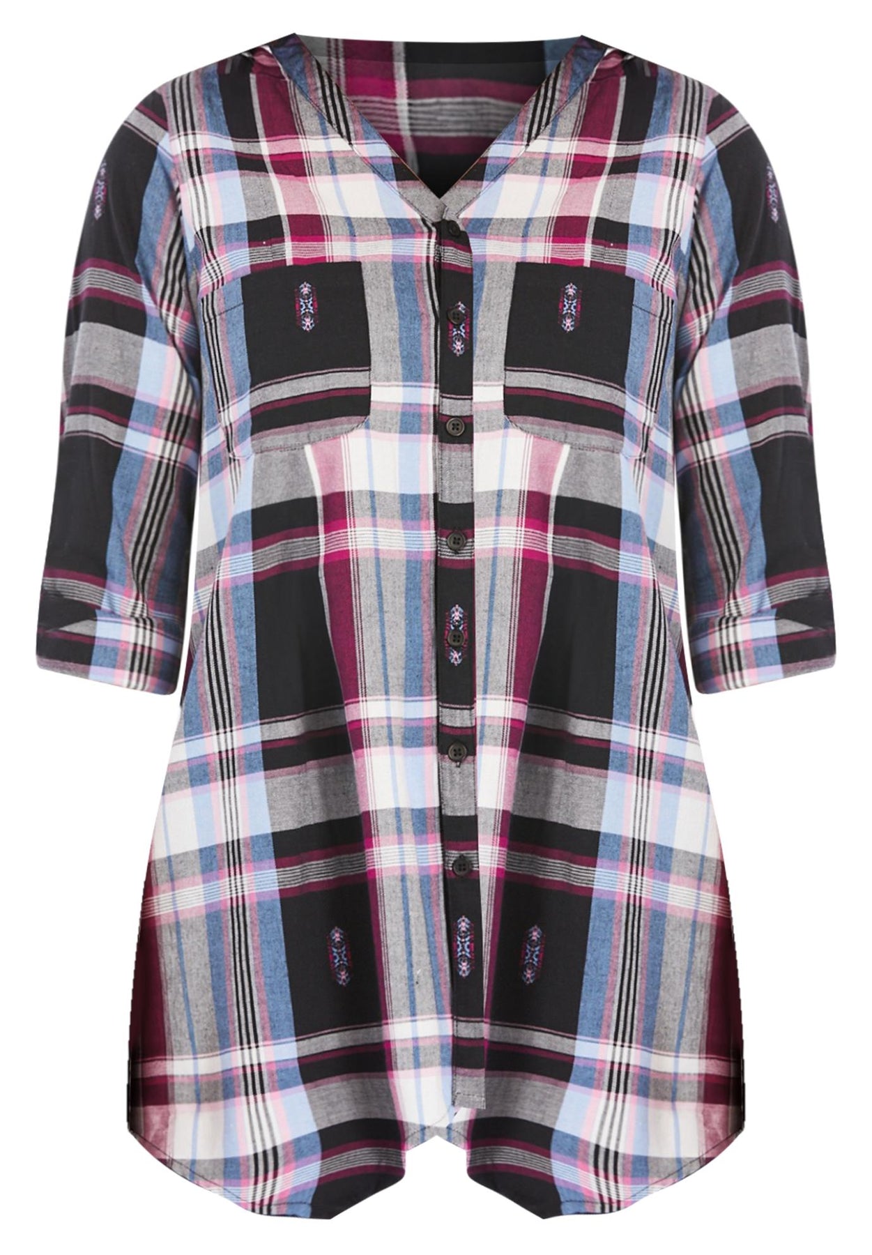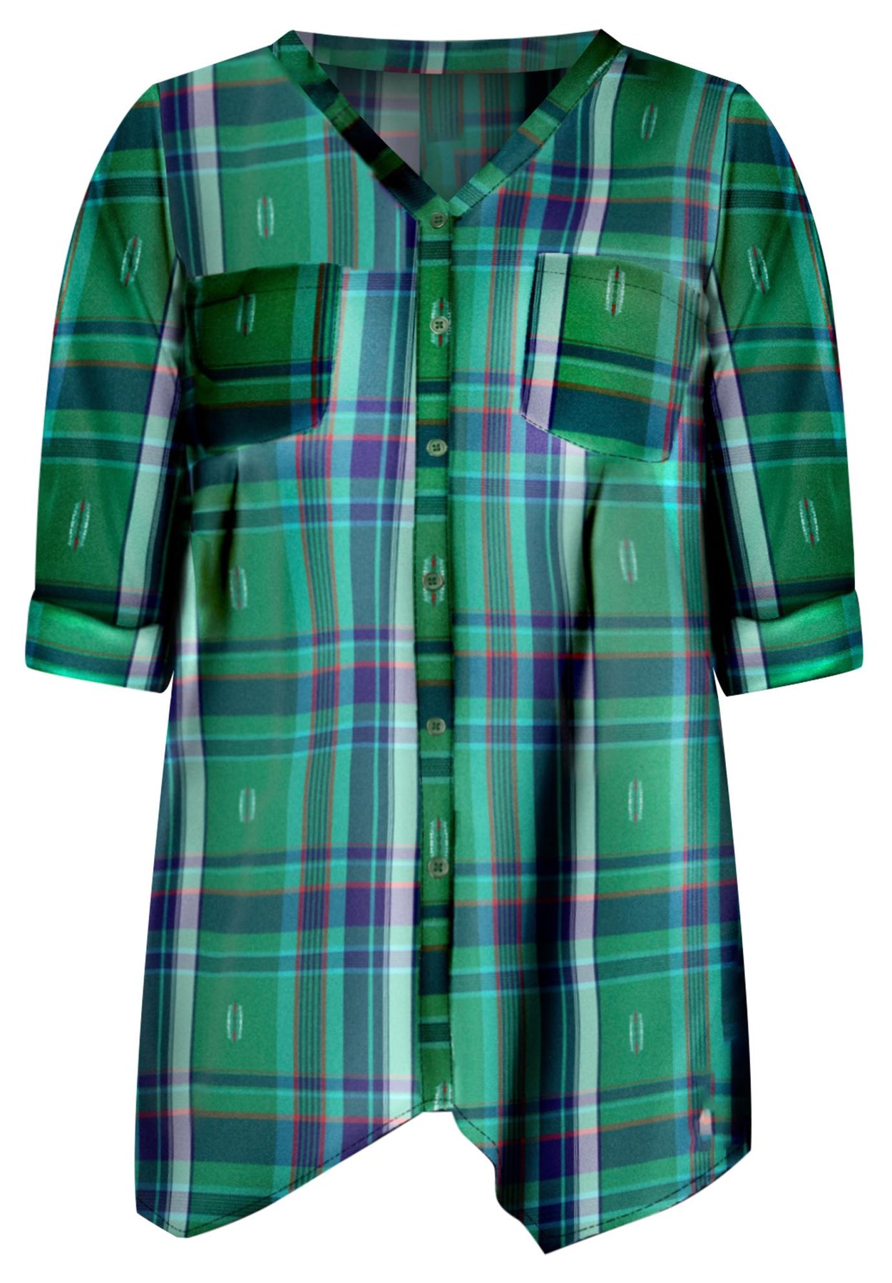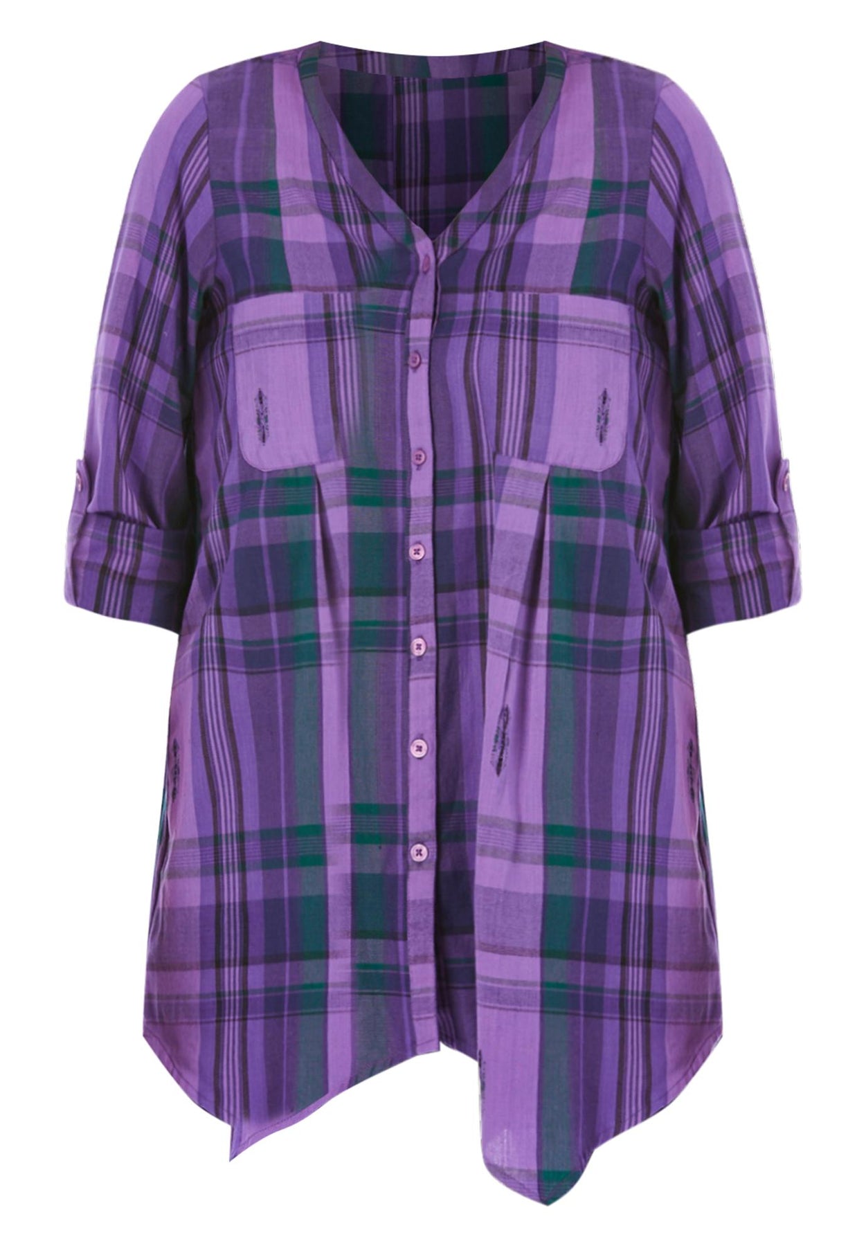 Plaid is the print of the season! Get the classic look with this super soft shirt designed to fit comfortably without sacrificing style. A little borrowed from the boys, but perfectly feminine with a handkerchief hem.