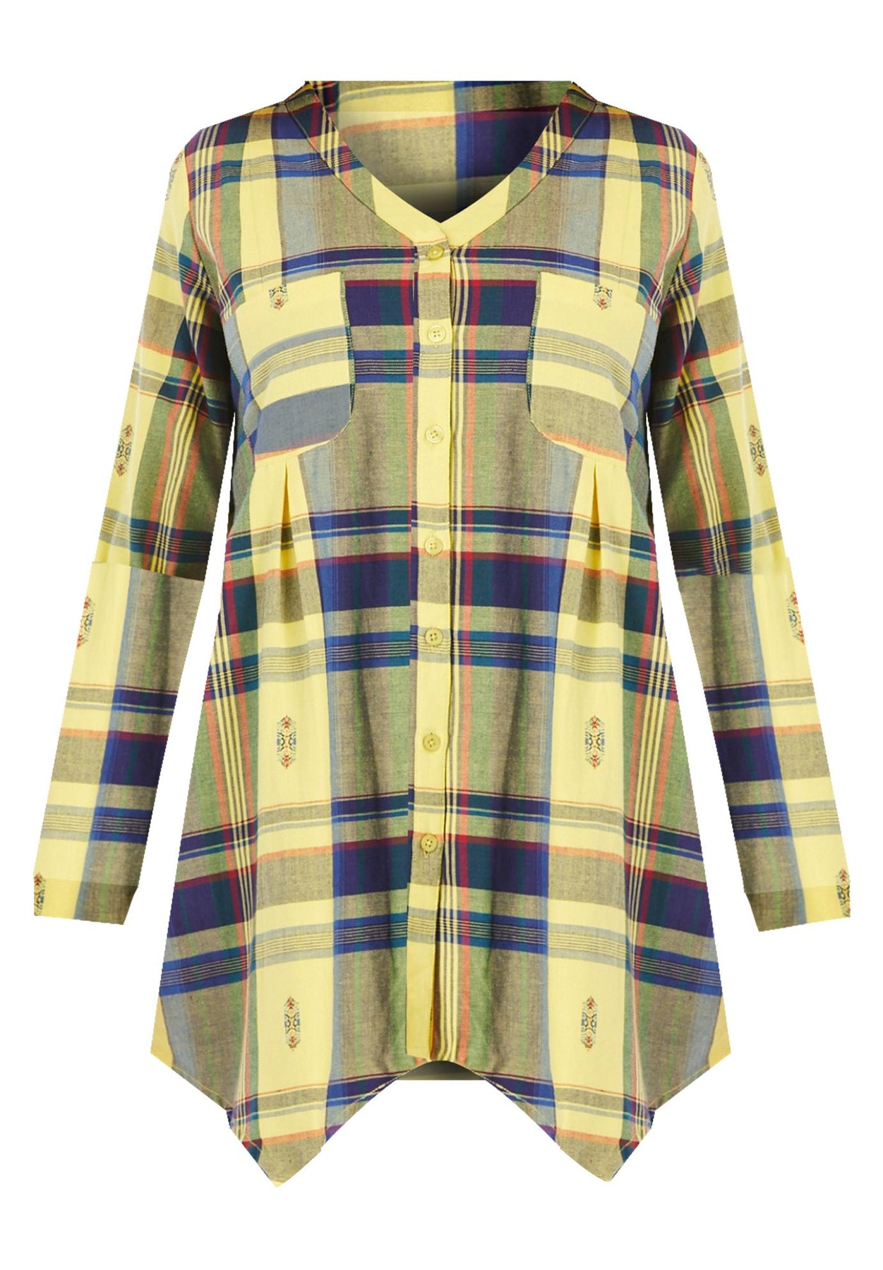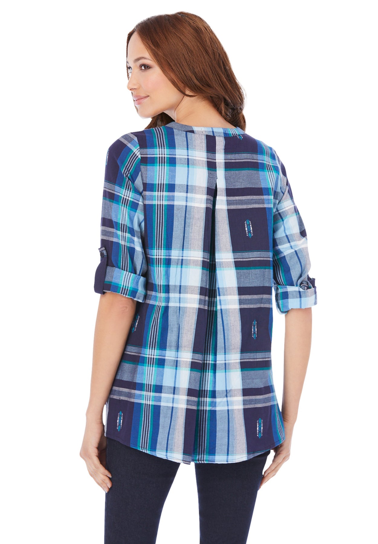 Plaid is the print of the season! Get the classic look with this super soft shirt designed to fit comfortably without sacrificing style. A little borrowed from the boys, but perfectly feminine with a handkerchief hem.