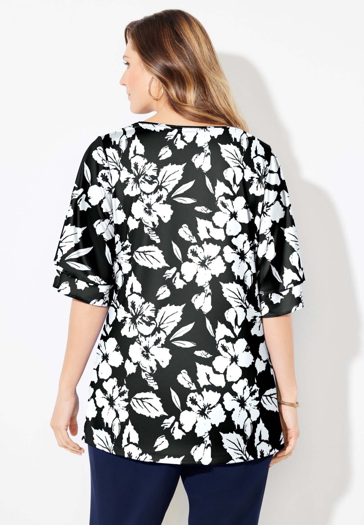 Flutter sleeves make this top so stylishly playful. Together with a flow-y silhouette, we suggest you get in on the fashion fun and give this top a go. We love how it looks with our Sateen Stretch Capri or Right Fit® Denim.