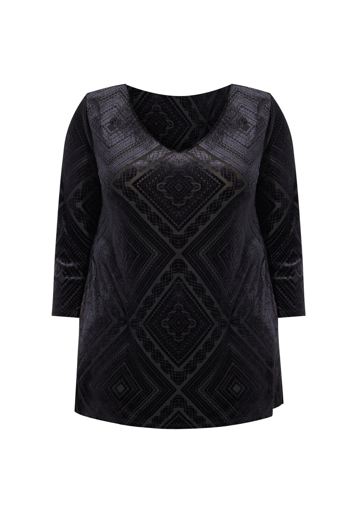 The rich, luxurious textured burnout velour elevates our tunic to be your perfect dress-up partner. Designed with a V-neckline, three-quarter length sleeves and side slits, it has a flattering, easy fit. Looks perfect paired with our AnyWear Velvet Wide Leg Pant