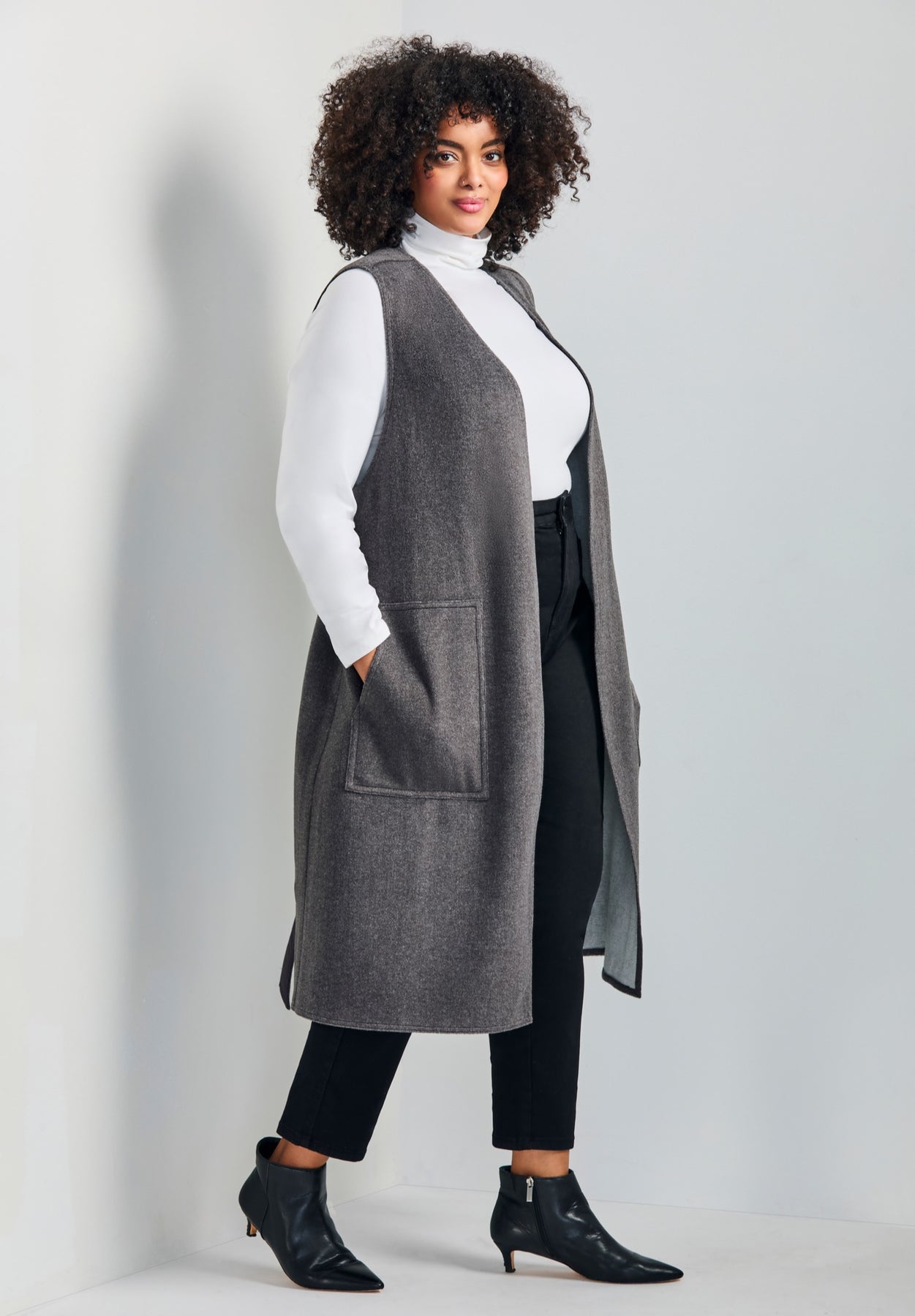 Introducing the Nova Longline Vest—your go-to layer for effortless style! This sleeveless wonder, complete with a self-tie belt and handy pockets, is perfect for adding that extra oomph to any outfit. The brushed fabrication makes it not only chic but also cozy and comfortable. Whether you're dressing it up or keeping it casual, the Nova Vest is sure to become your wardrobe's MVP!