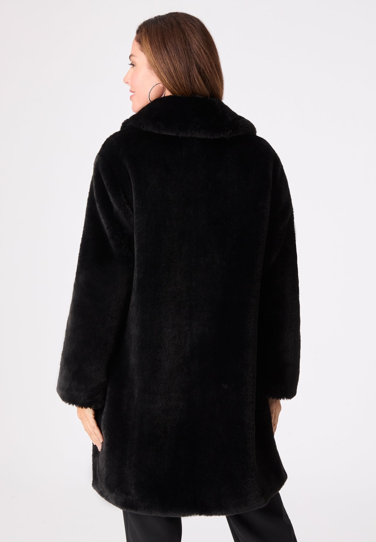 Plus Size Mid-Length Luxe Faux Fur Coat