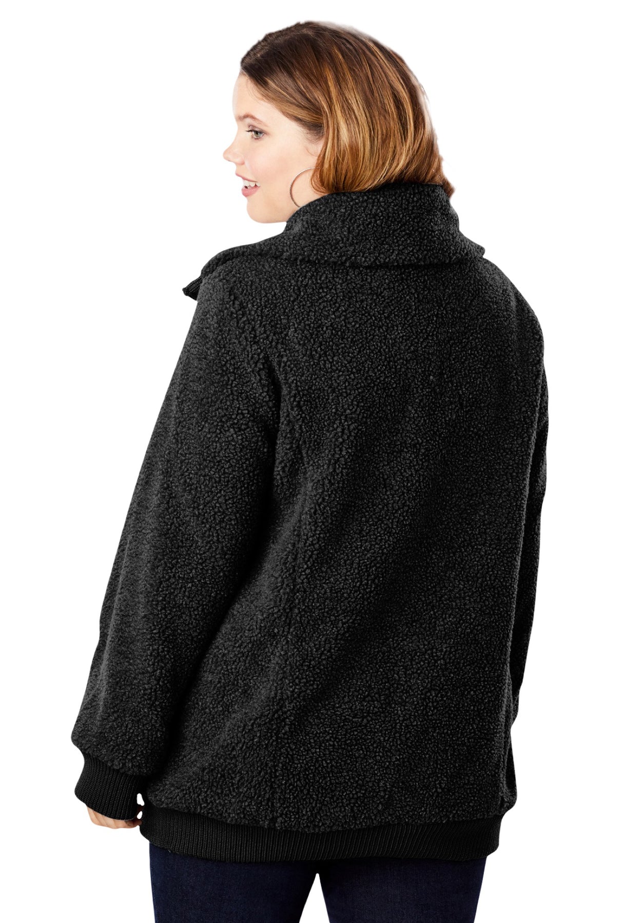 Plus Size High Collar Teddy Fleece Bomber