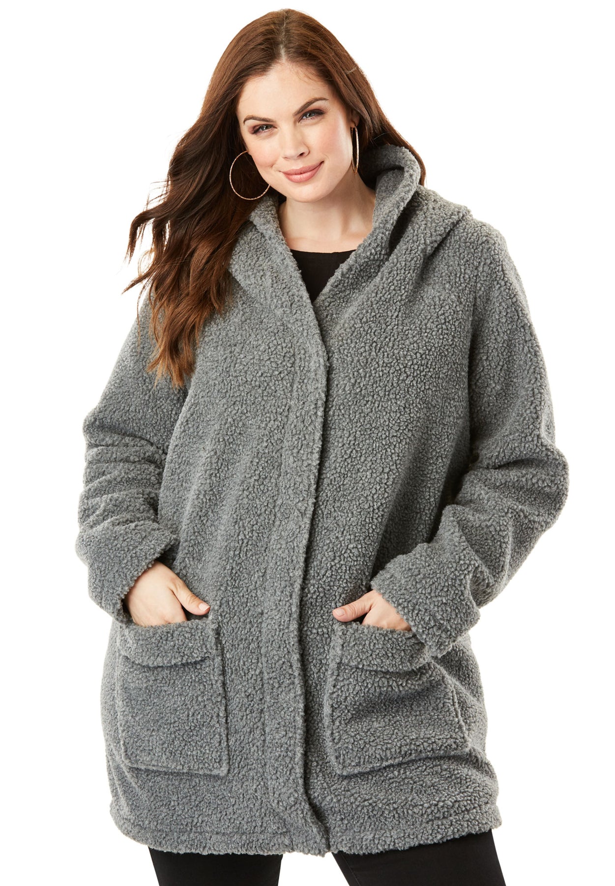 Plus Size Hooded Teddy Fleece Coat | Roaman&