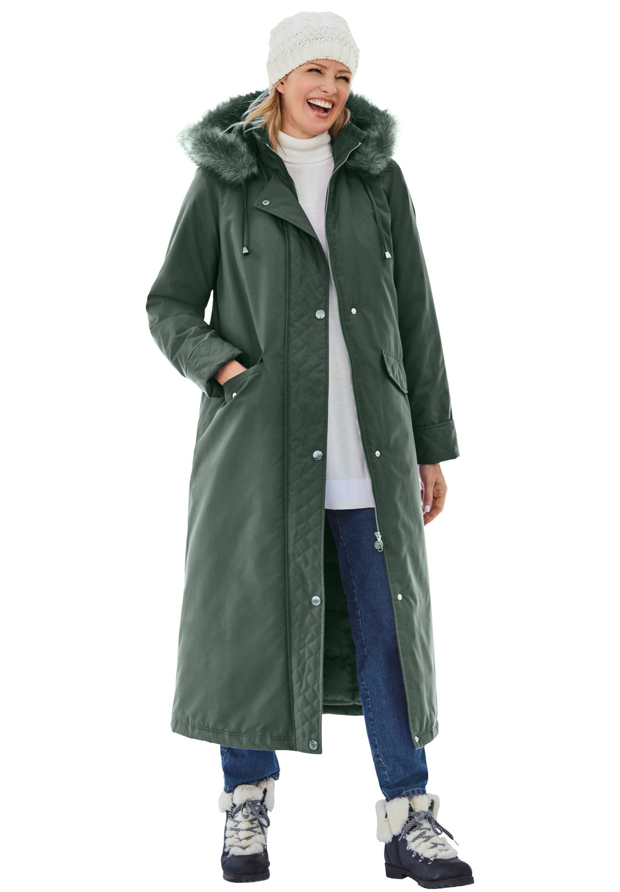 Long Hooded DTM Faux Down Parka Coat | Woman Within