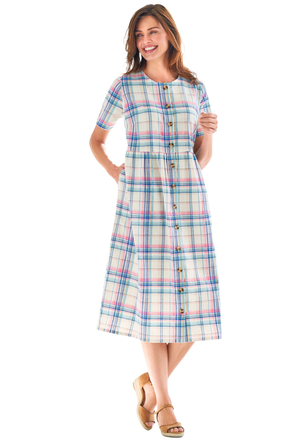 Short-Sleeve Seersucker Dress | Woman Within