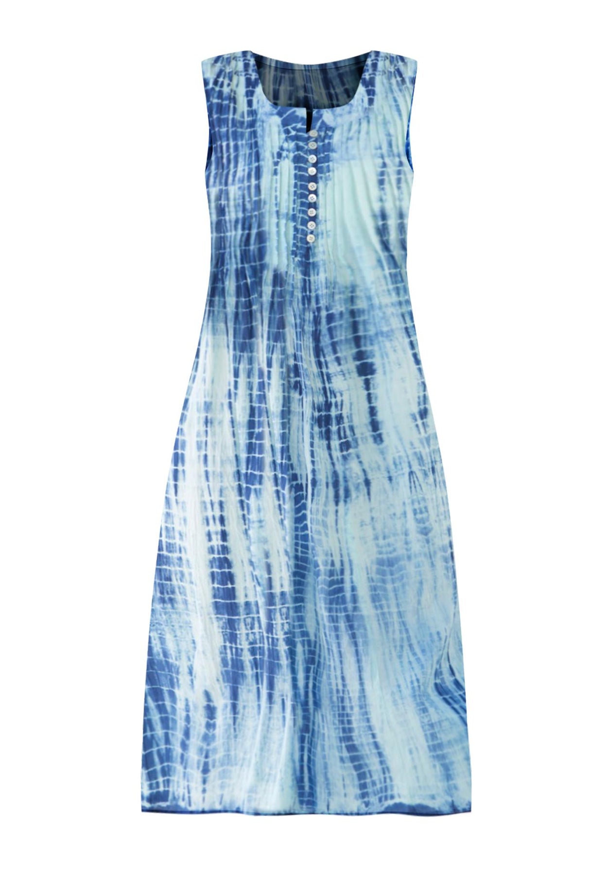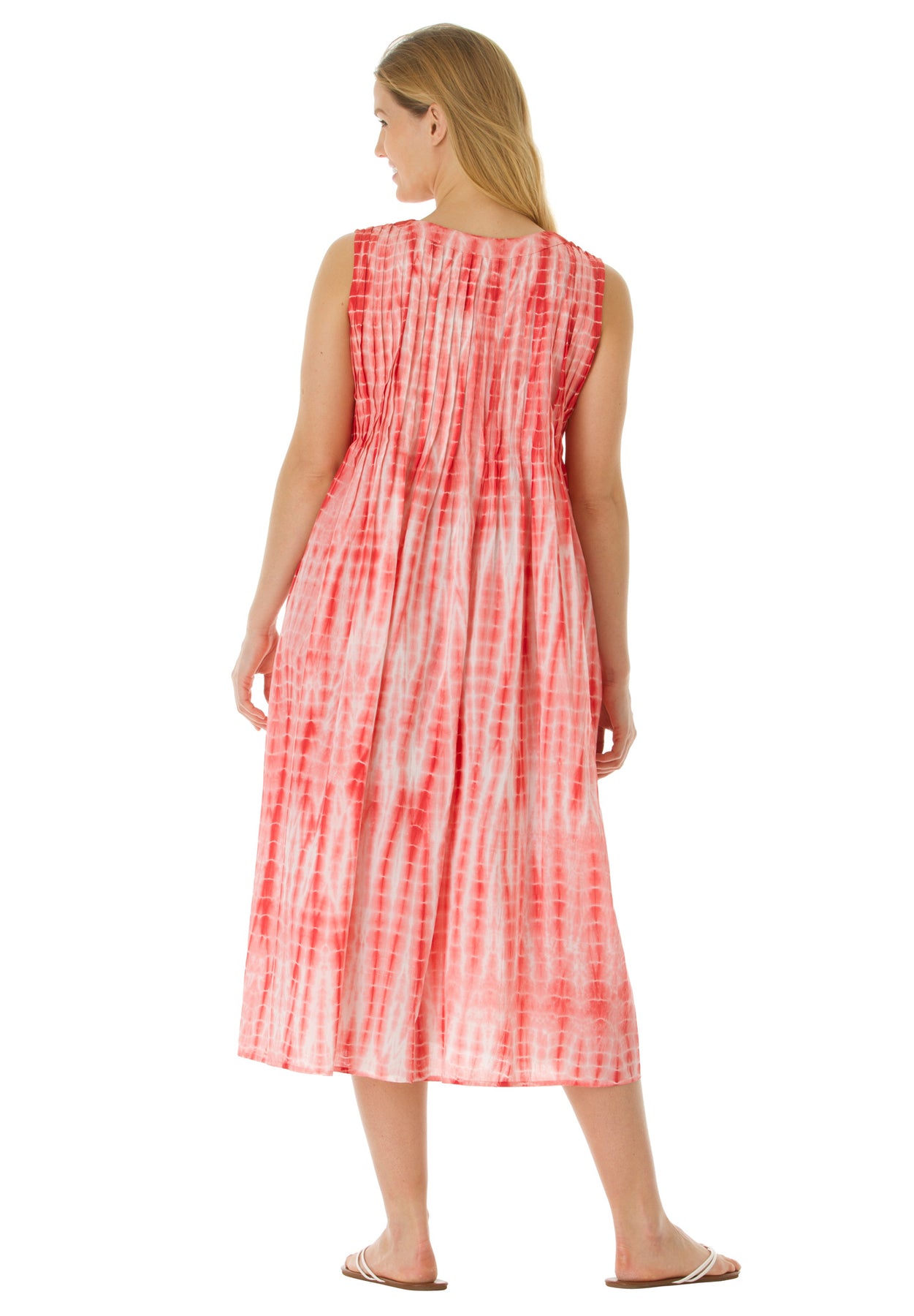 - Add a pop of color to your wardrobe with this vibrant sleeveless tie-dye dress.