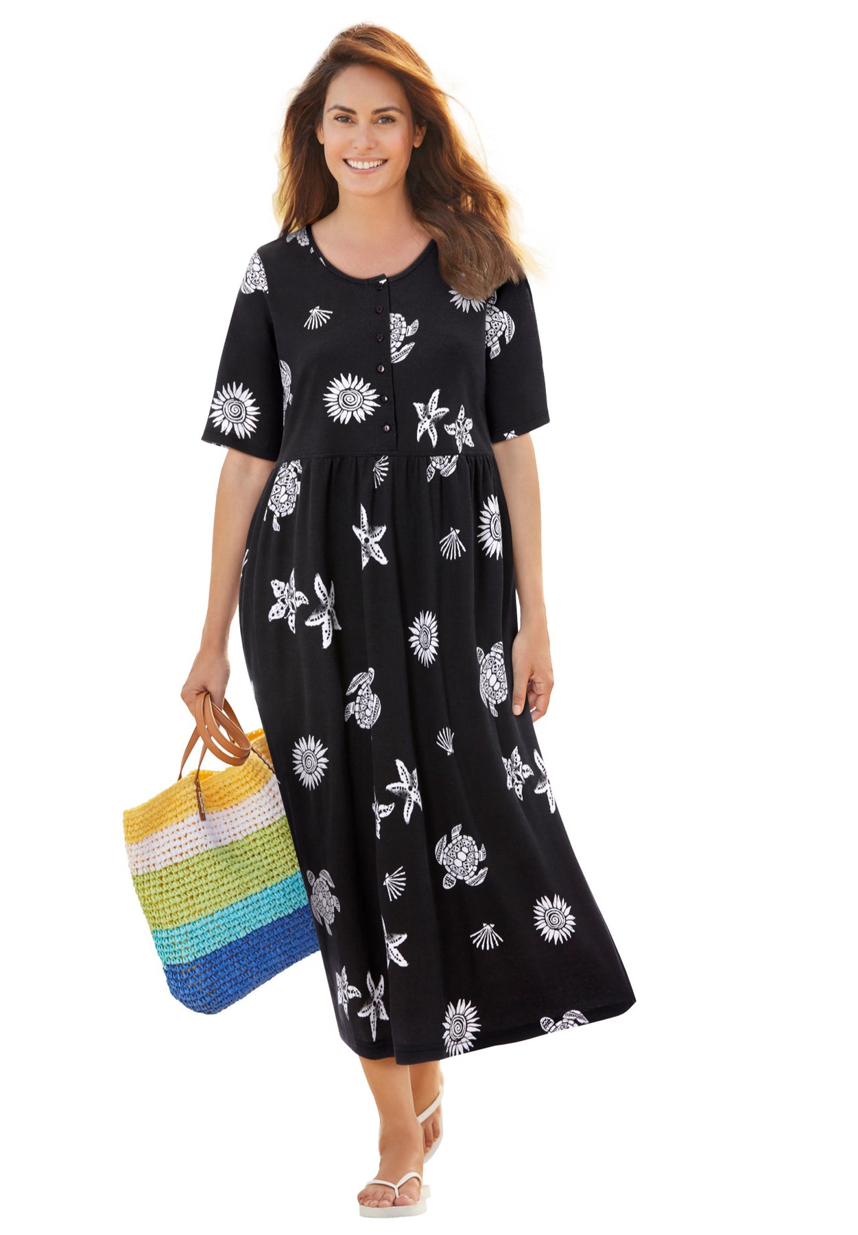 - Feel instantly relaxed with our Stamped Empire Waist Dress, designed to make you feel like you're on vacation.
