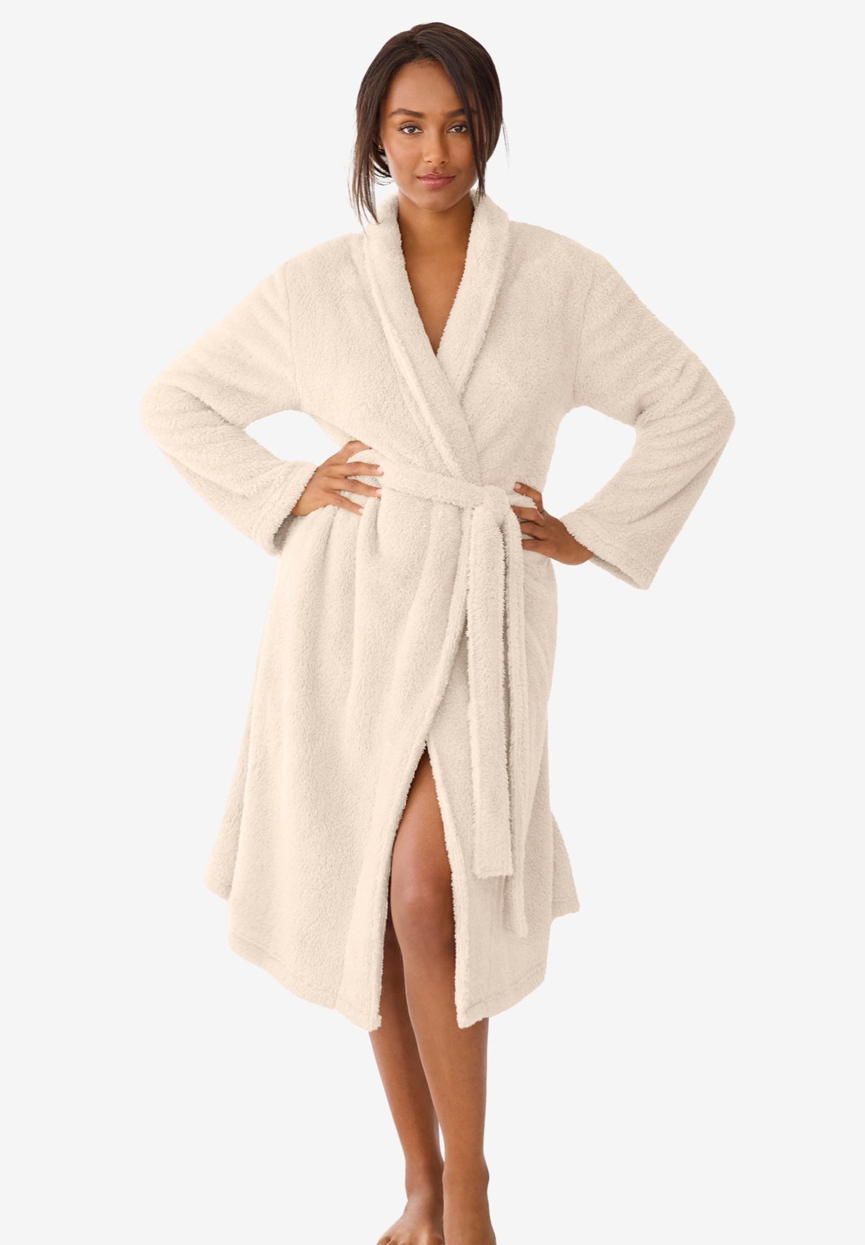 Our cozy wrap robe is ultra soft and plush. Easy wrap around with a self-belt and inside tie to keep in place. Perfect to lounge around in everyday.