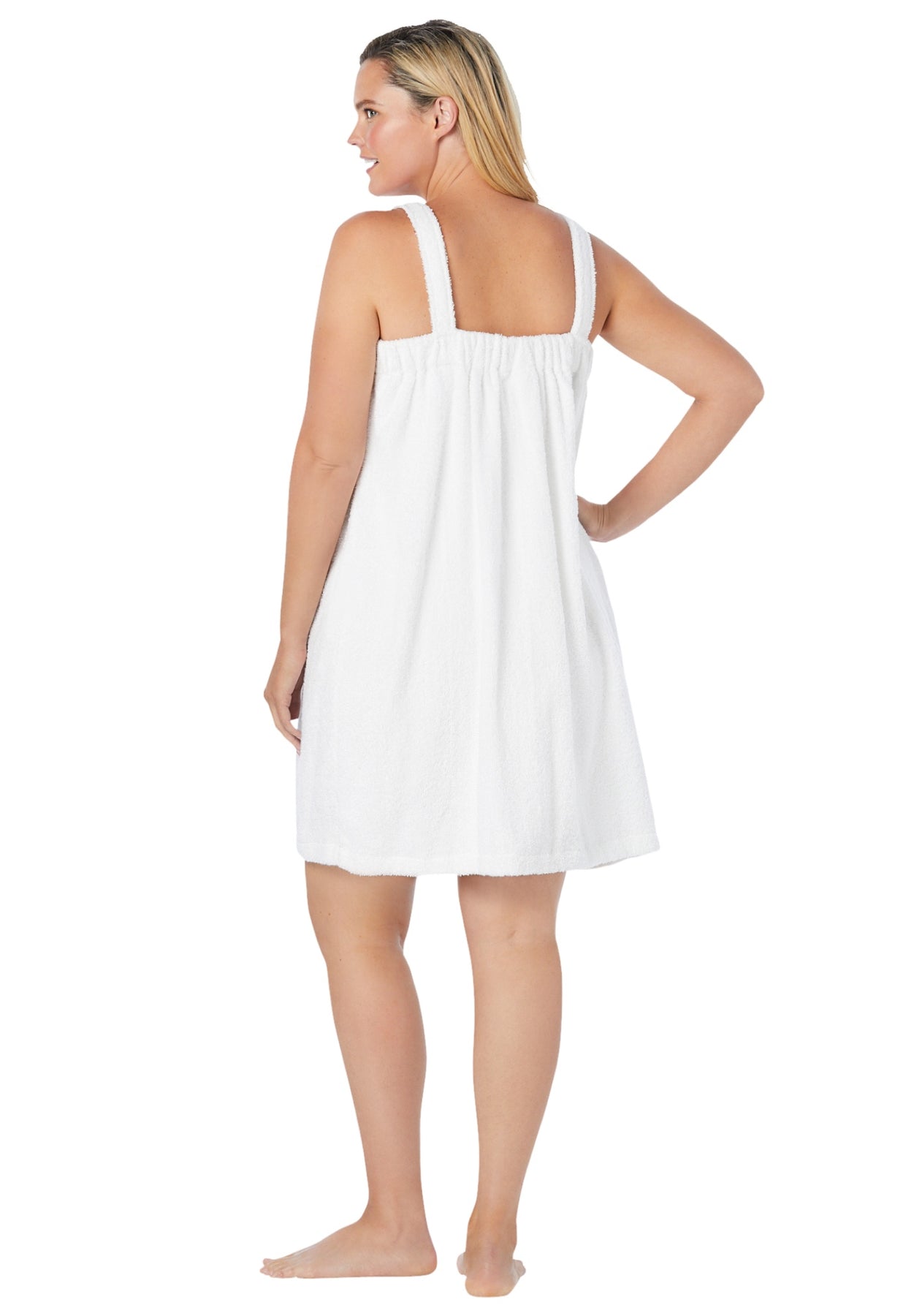 A robe and towel all in one, this towel wrap does double duty while allowing hands-free drying as you step out of the shower or bath. Shoulder straps plus an elastic top band keep it in place without the risk of slippage while soft terry fabric absorbs water and keeps you comfy. Made with a front Velcro closure for easy on, easy off.