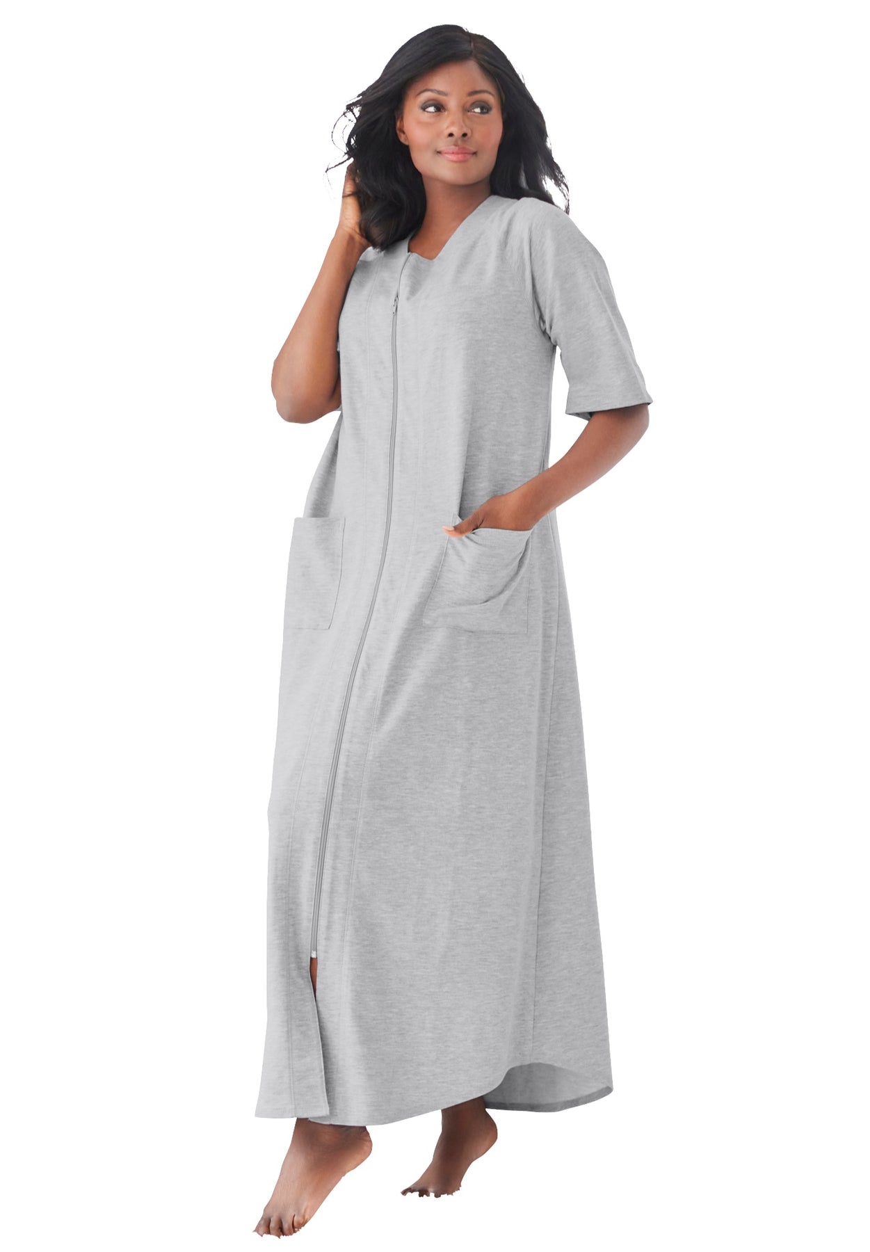 Long French Terry Zip-Front Robe | Dreams & Co.