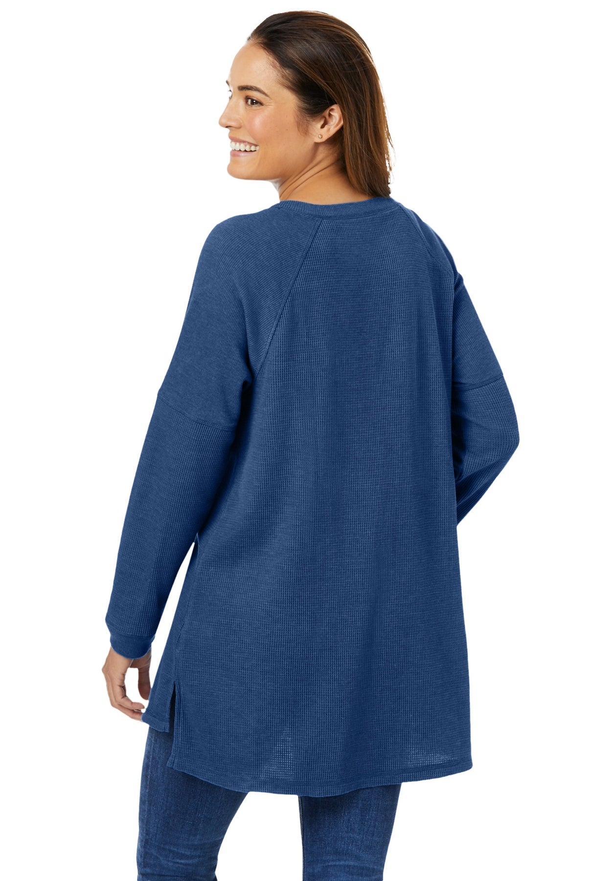 Our much-loved thermal fabric done in a lightweight sweatshirt style with long raglan sleeves. This textured top in a relaxed fit will have you feeling super comfy and cozy. Great for transitional weather or hanging around the house.