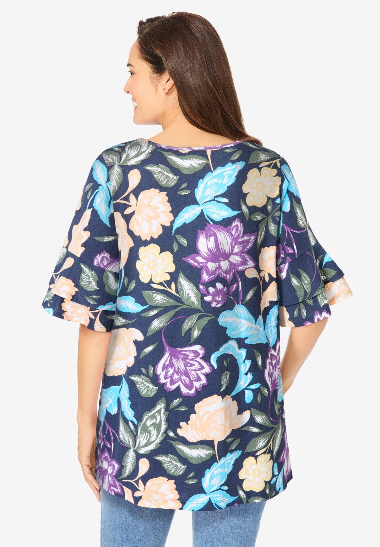 Hi there! Thank you for leaving a review for our Ruffled Elbow-Sleeve Tunic. We're so glad to hear that you're enjoying the product. We strive to provide high-quality and stylish items for our customers. Thank you for your support!