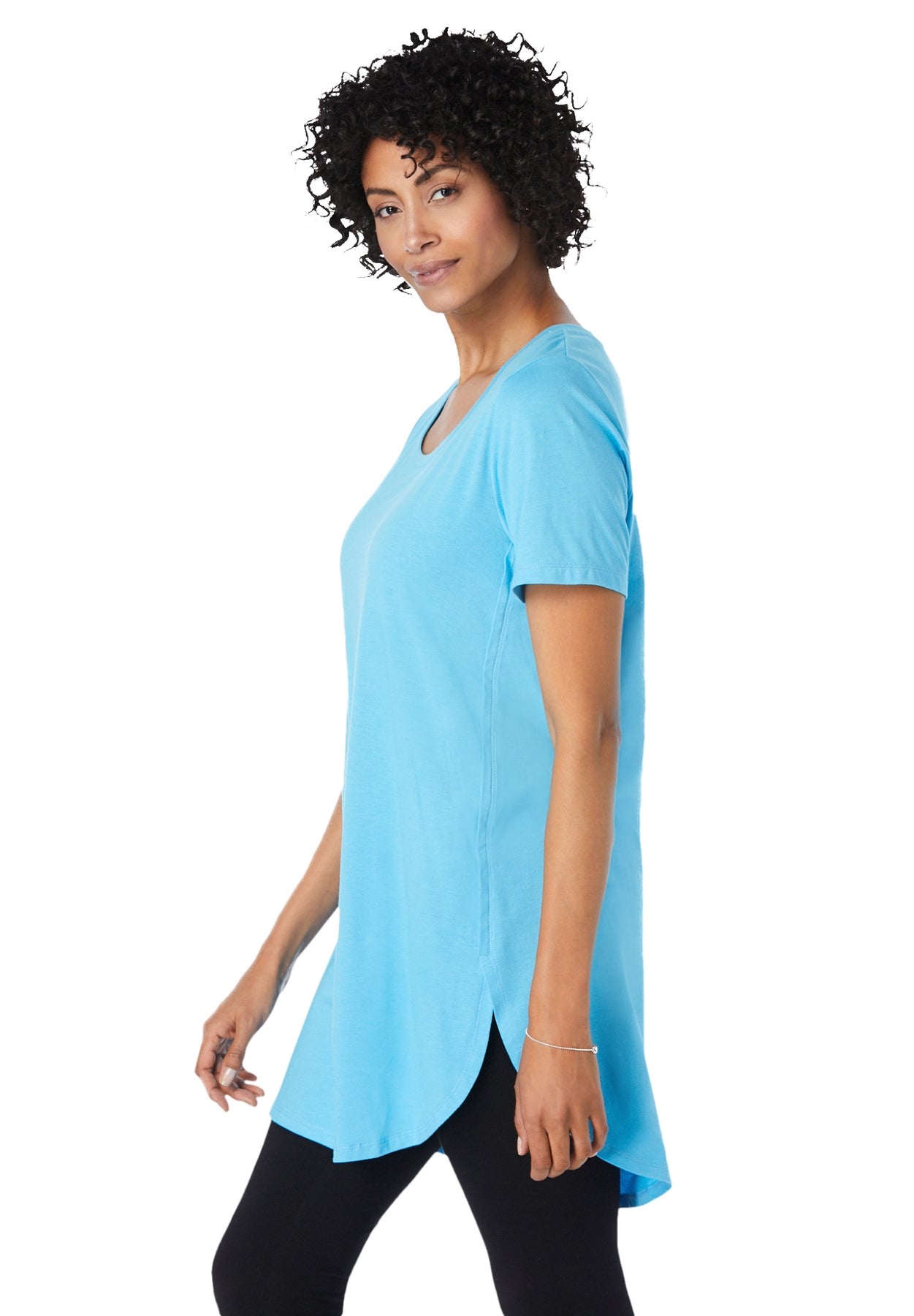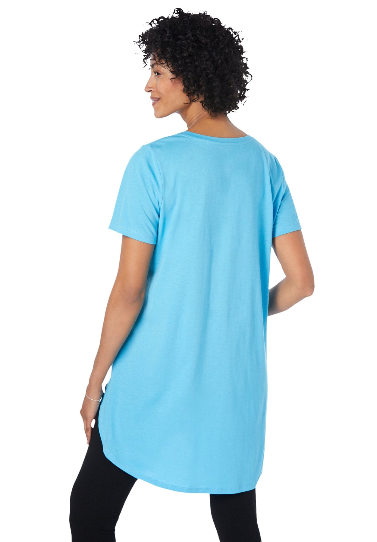Made in an extra-long length with a split, rounded hem to cover the hips, this maxi tunic is a relaxed-fitting staple with a classic scoop neck and short sleeves. A perfect pairing with your favorite stretch leggings.