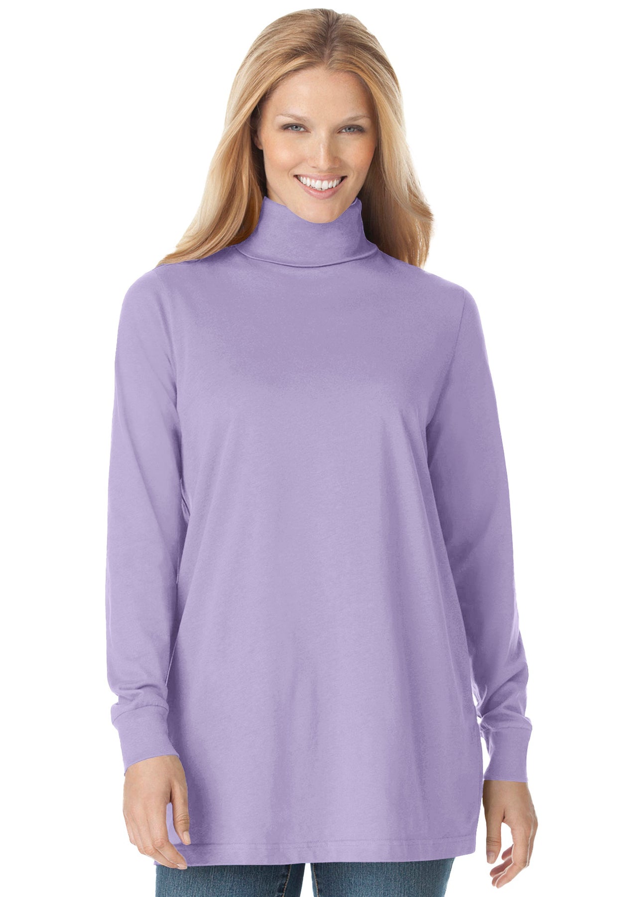 I love the color selection of WW turtlenecks However even if I order them in tunic length the sleeves shrink when washed The all cotton ones start out at least near my wrist but end up midway to my elbow within a few washings Turtlenecks are my winter staple under sweatshirts and sweaters and must withstand both washer and dryer However WW is one of the few places that I can buy turquoise pink jade and some of my other favorite colors