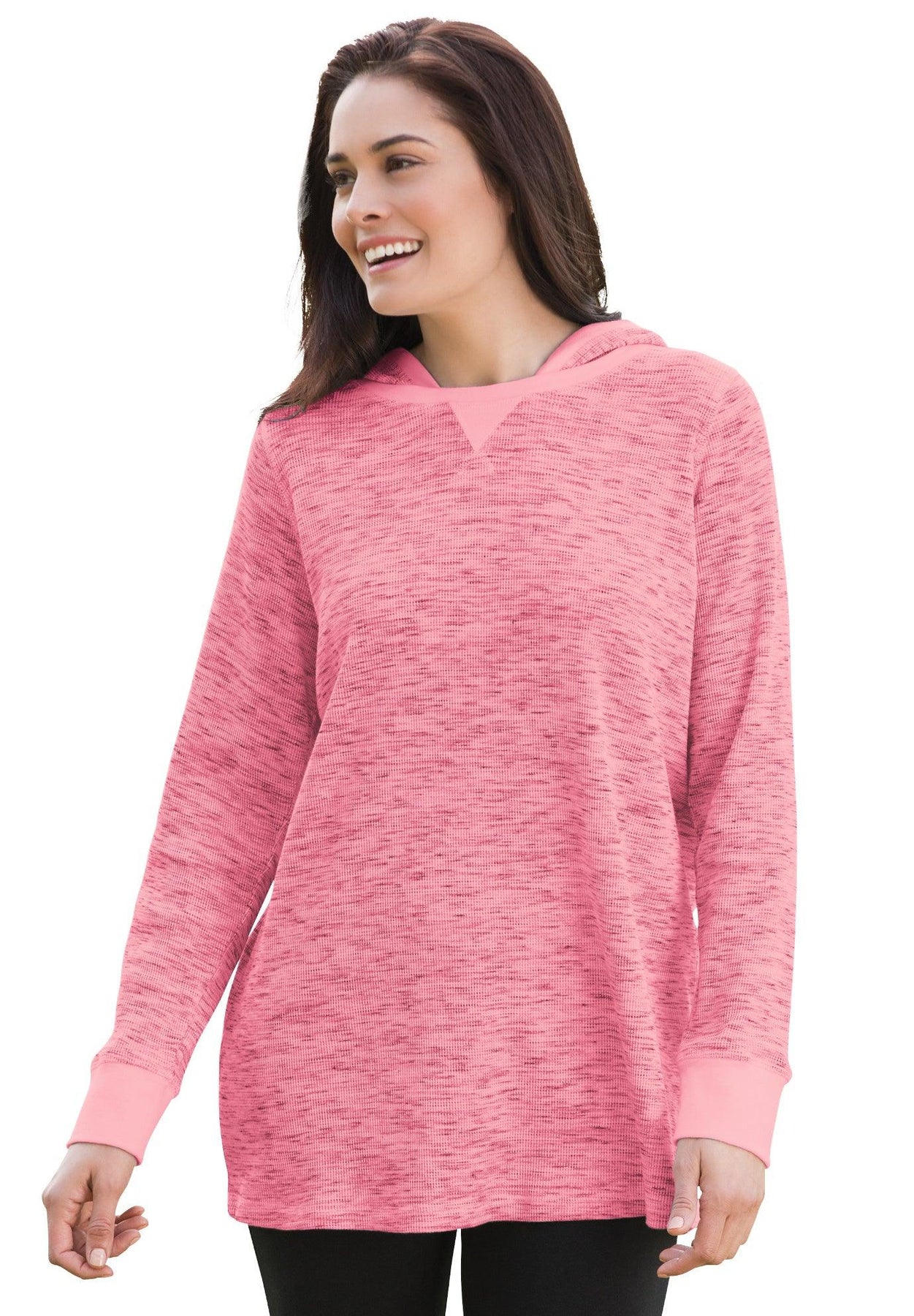 This thermal hoodie is perfect to wear alone or as an extra layer and for extra softness. Comes in Marled and Heather Stripe.